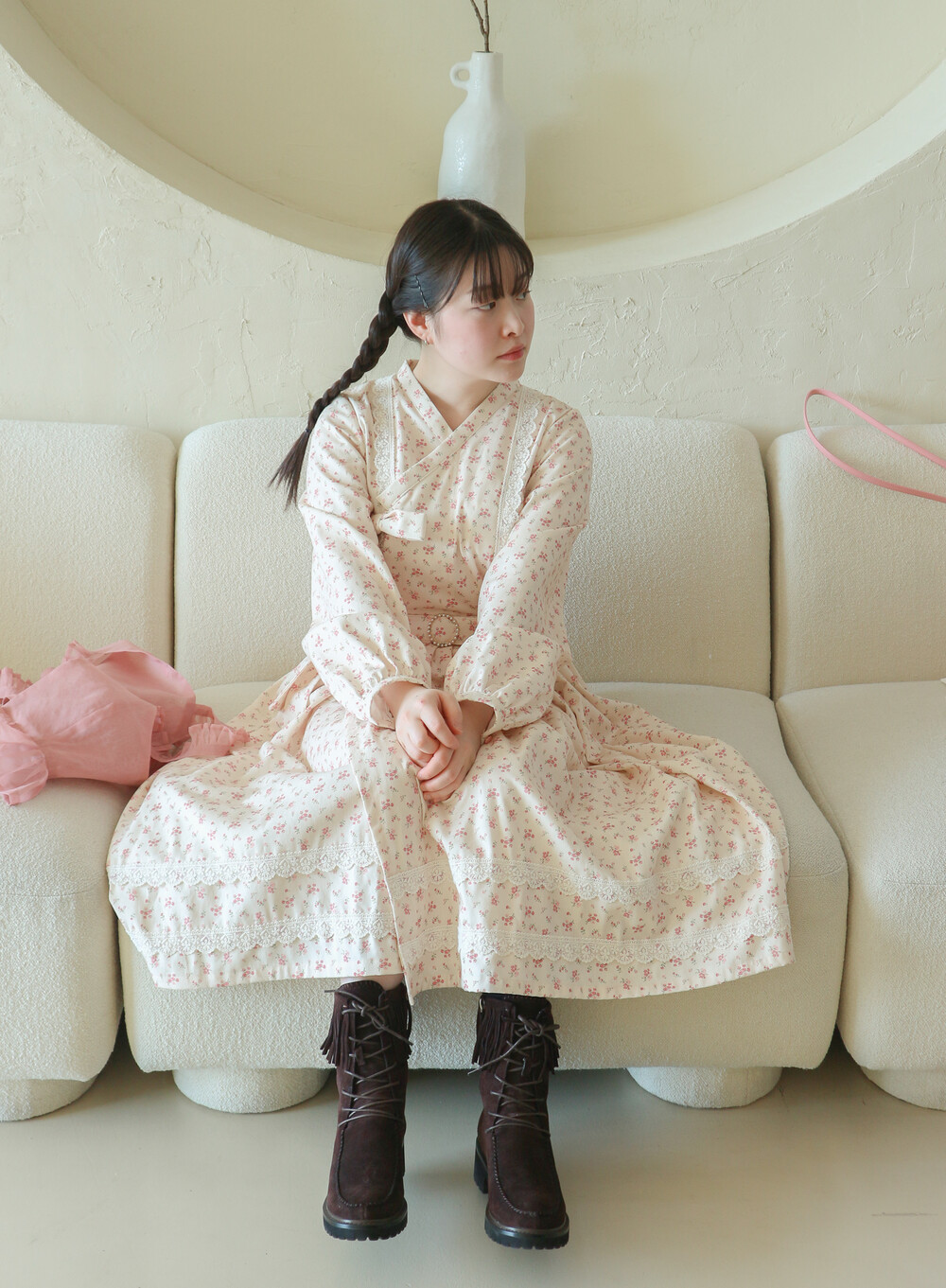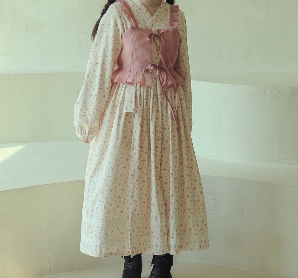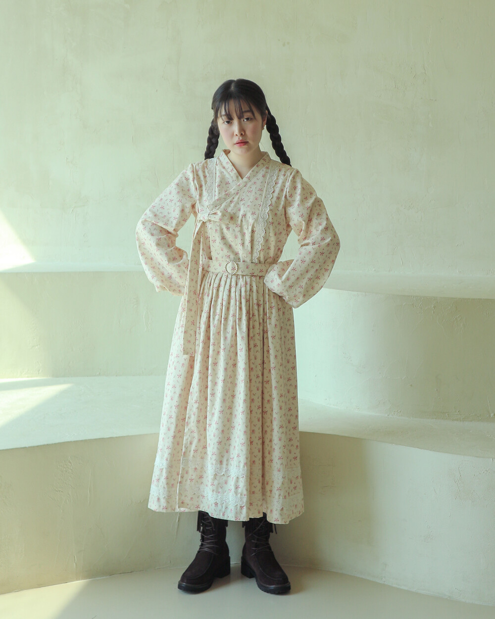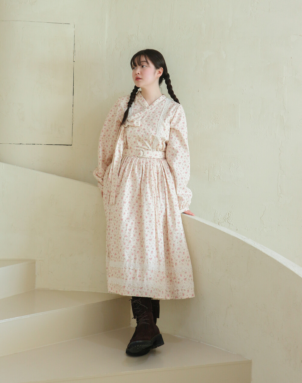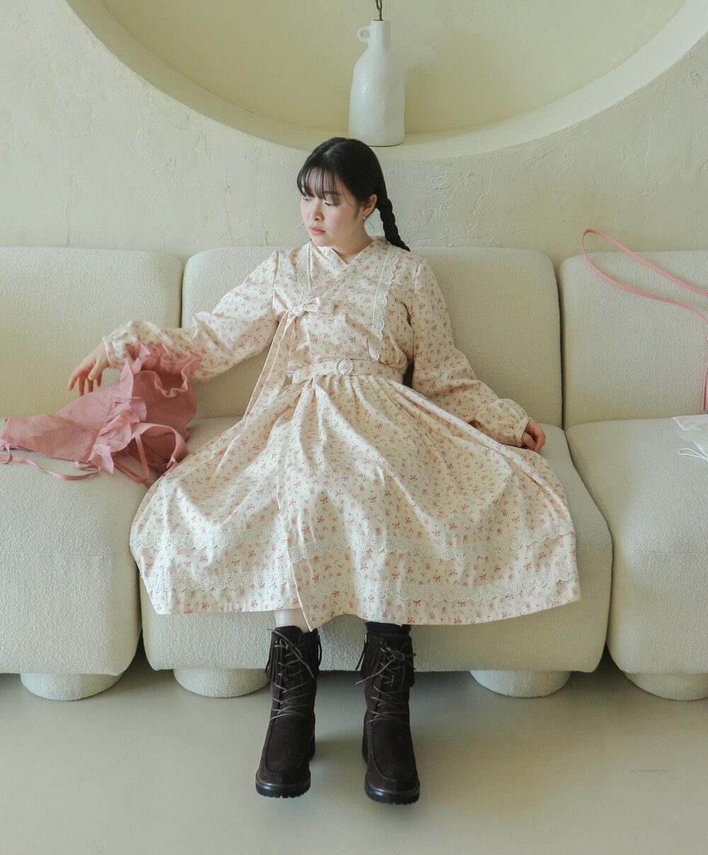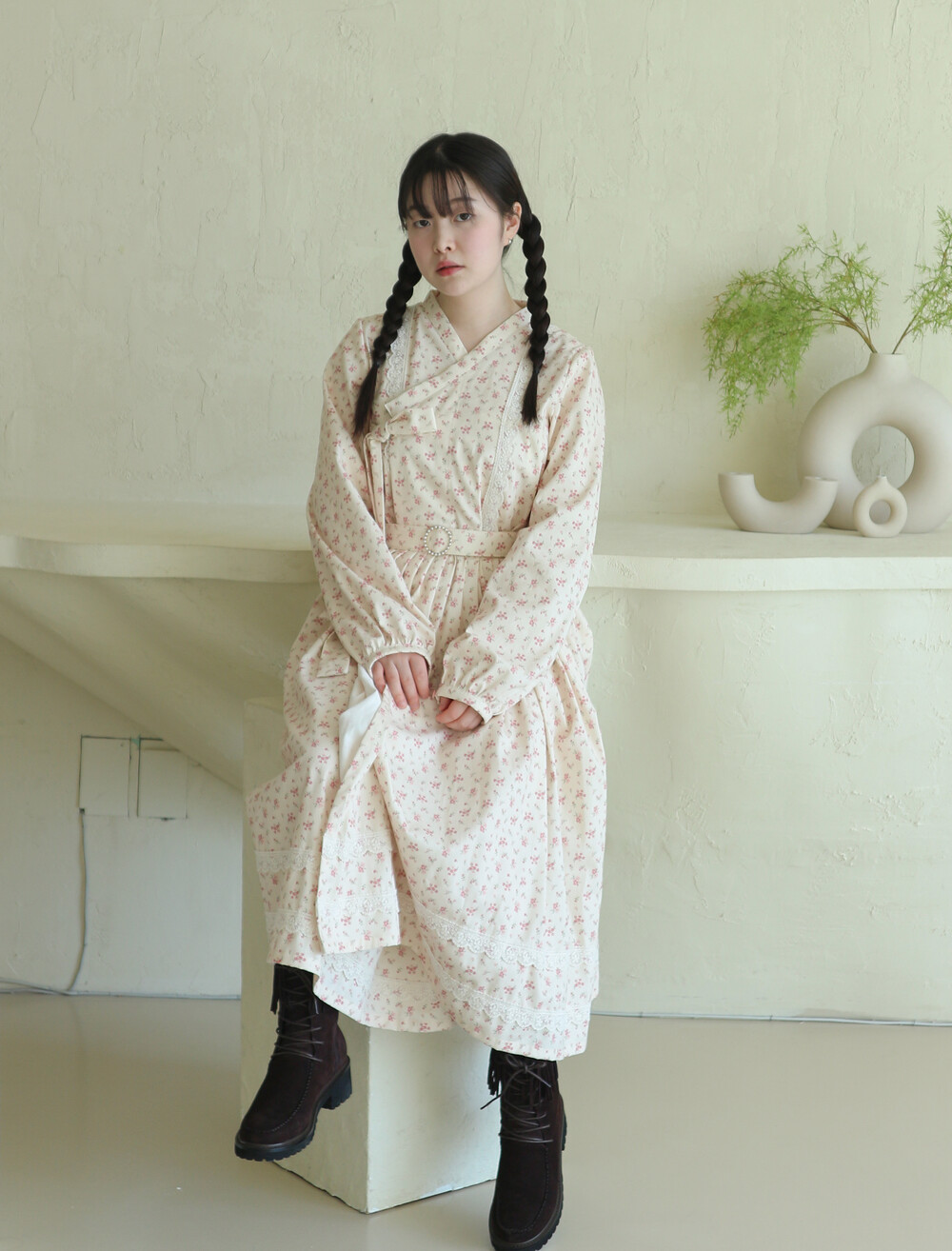 탄탄한 트윌 면에 작은 꽃무늬가 사랑스러운 철릭 원피스입니다.