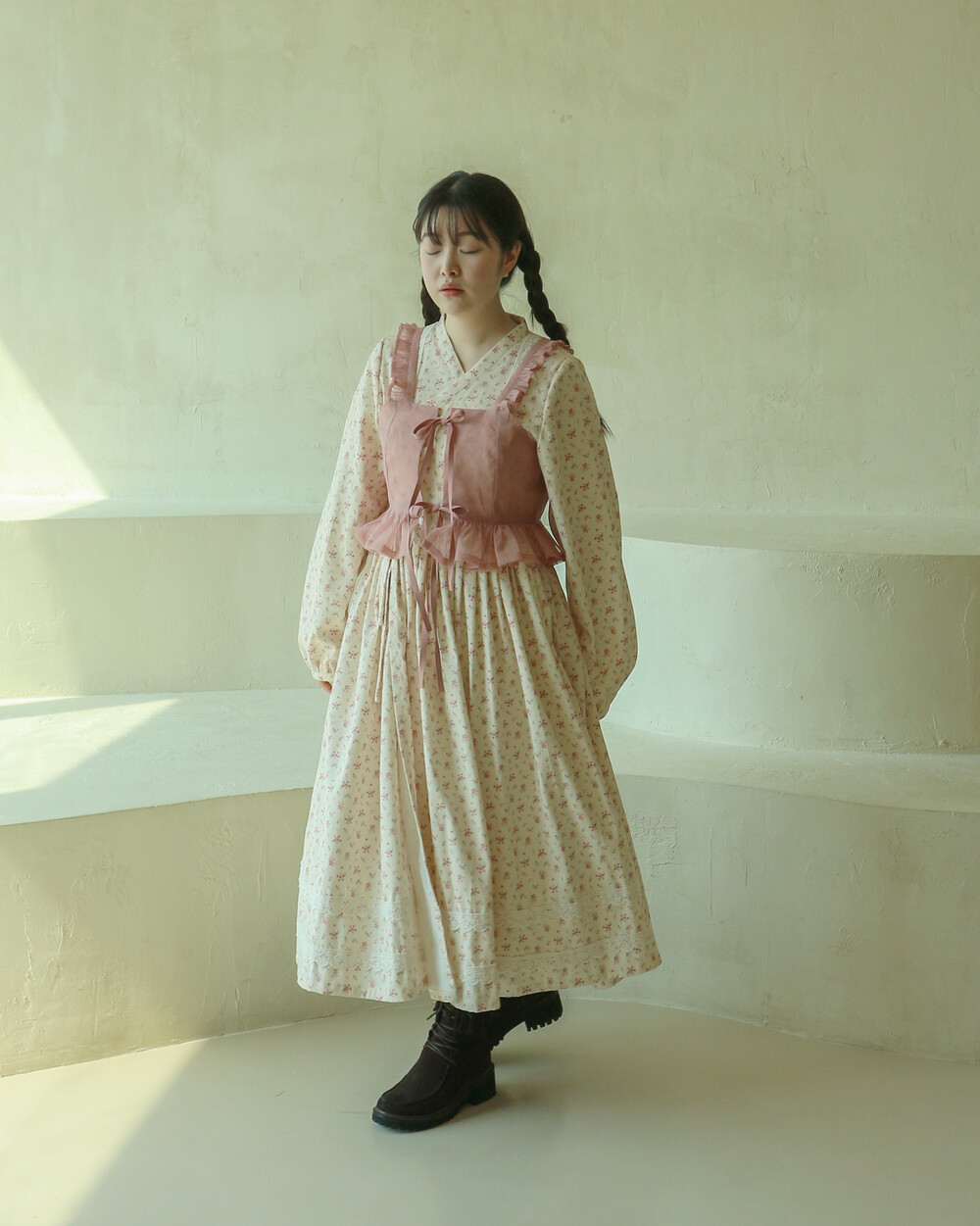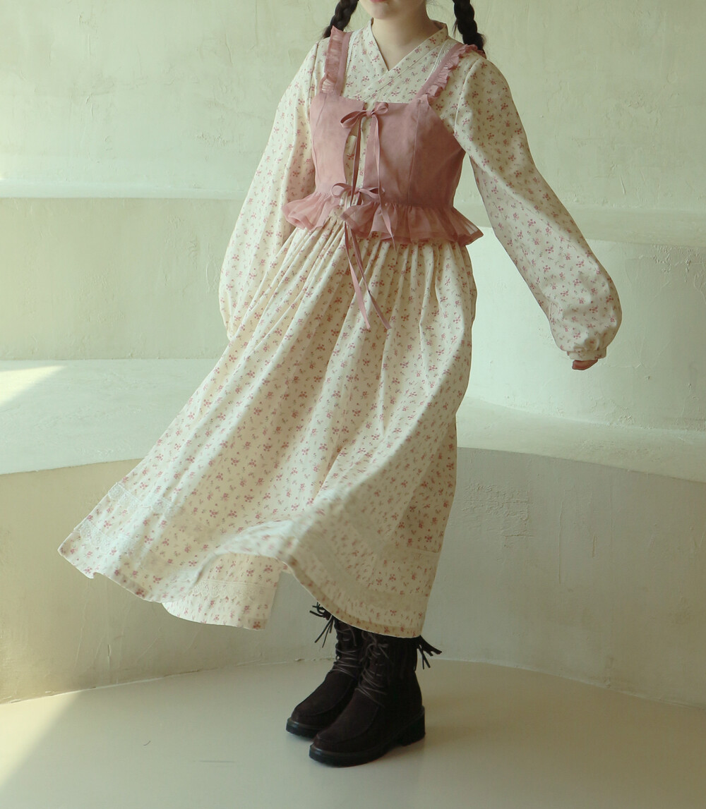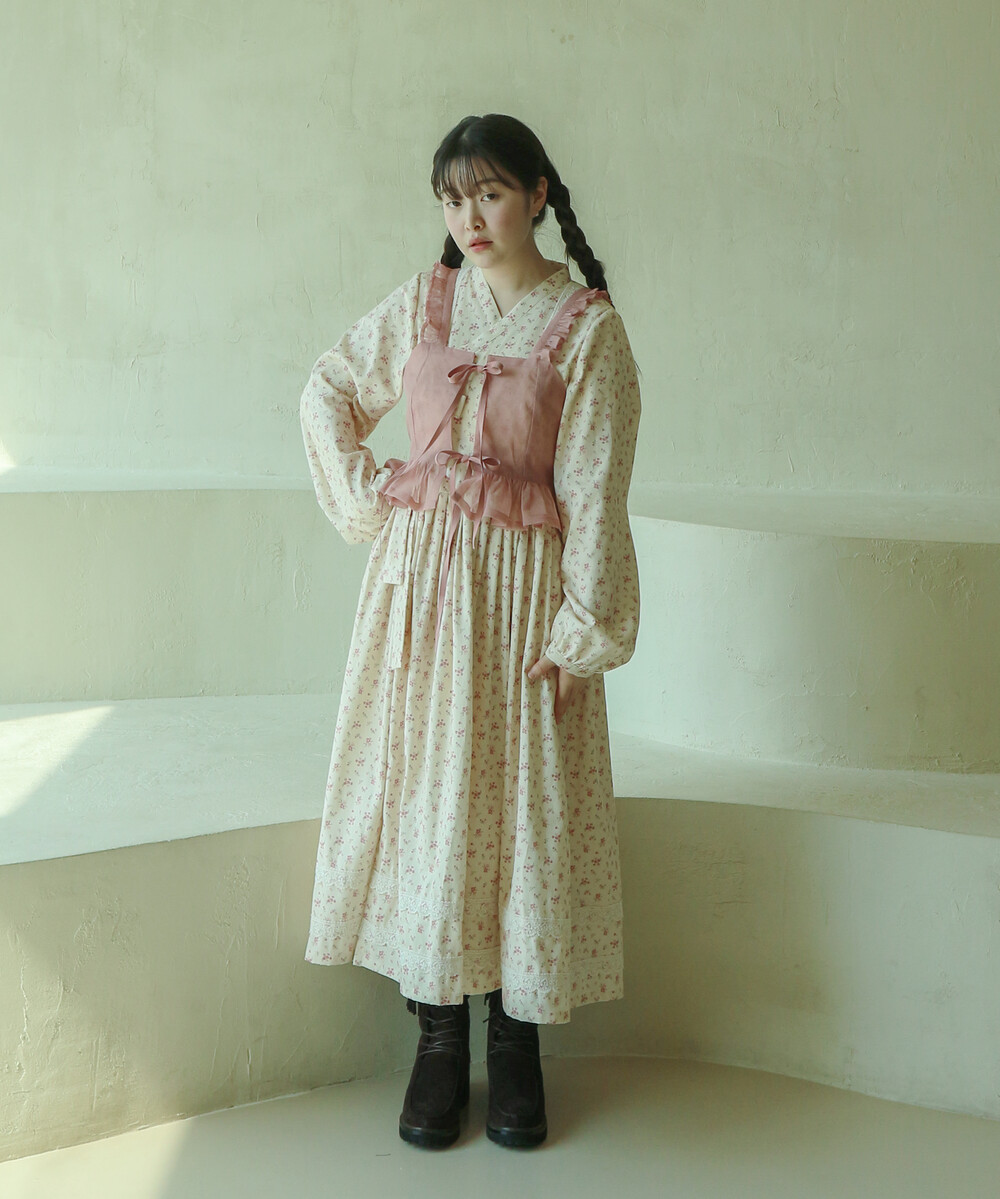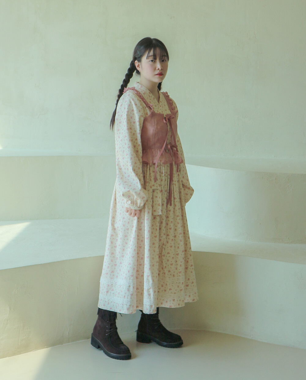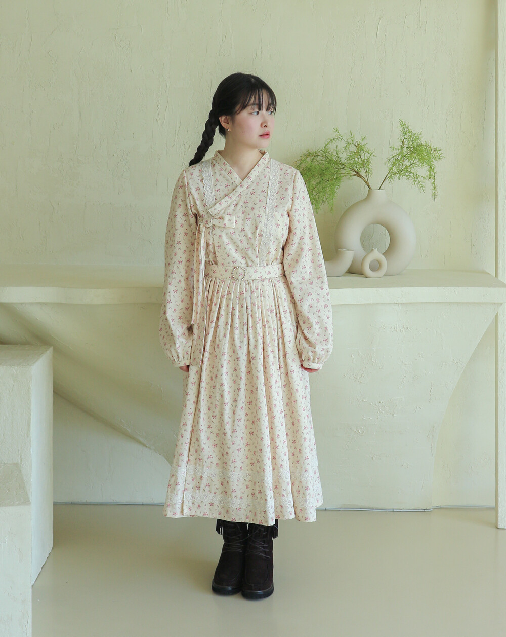 탄탄한 트윌 면에 작은 꽃무늬가 사랑스러운 철릭 원피스입니다.
