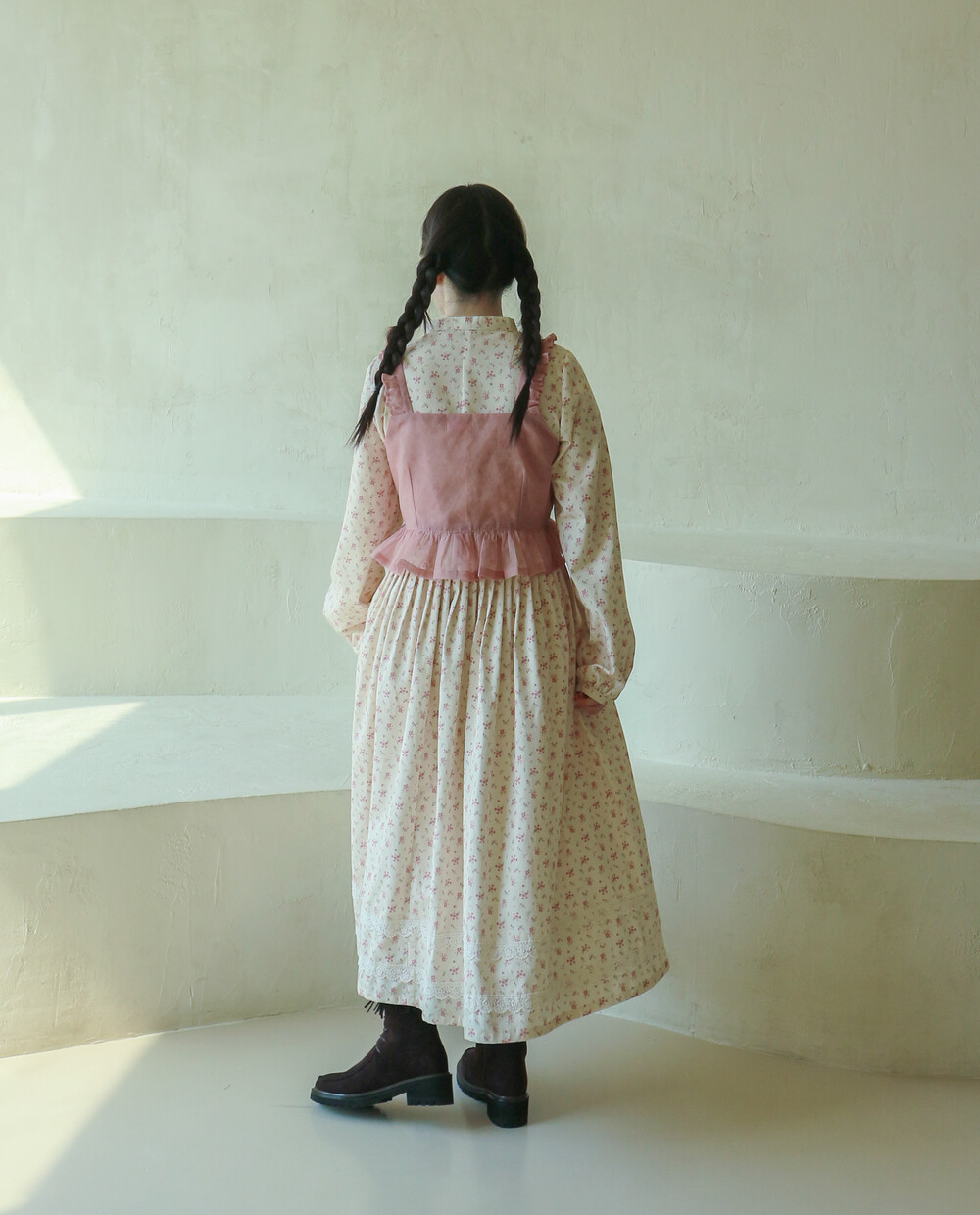 어깨는 퍼프없이 슬림하게 떨어지는 디자인으로 소매 끝에 풍성한 퍼프와