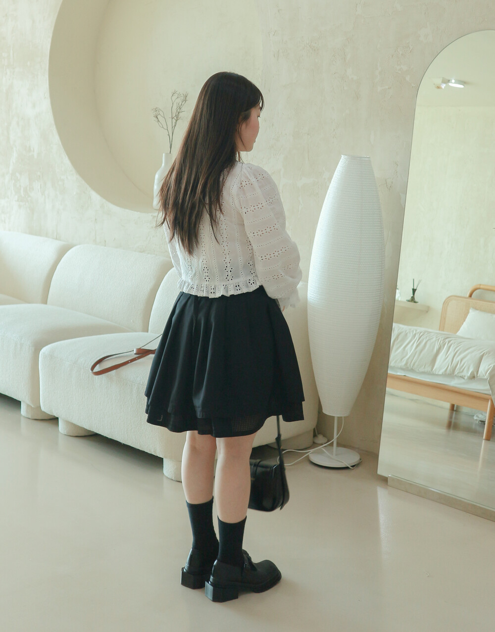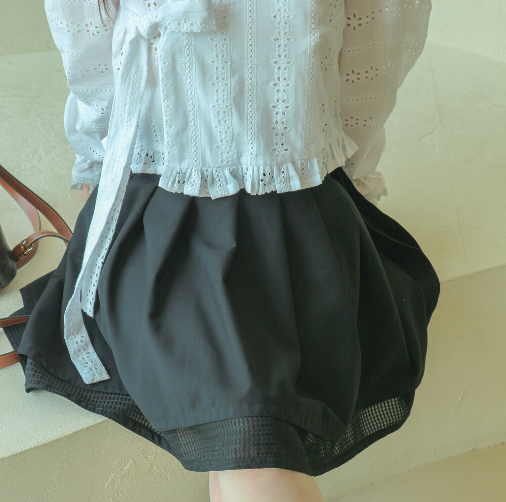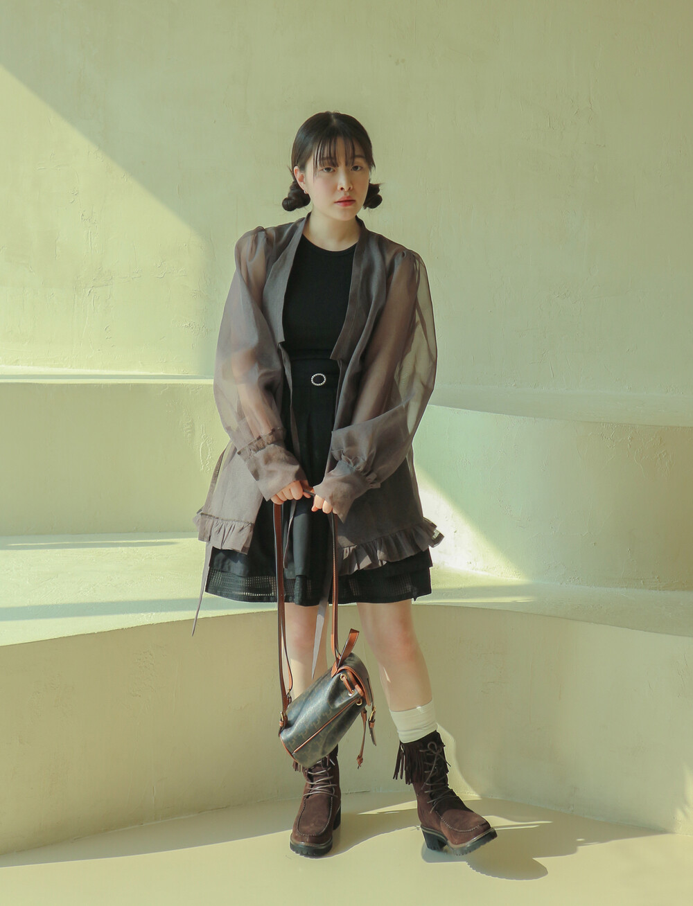 짧은 기장으로 제작되었으며 2겹으로 제작되어 전체적인 무게감과 두께감이 살짝 있습니다.