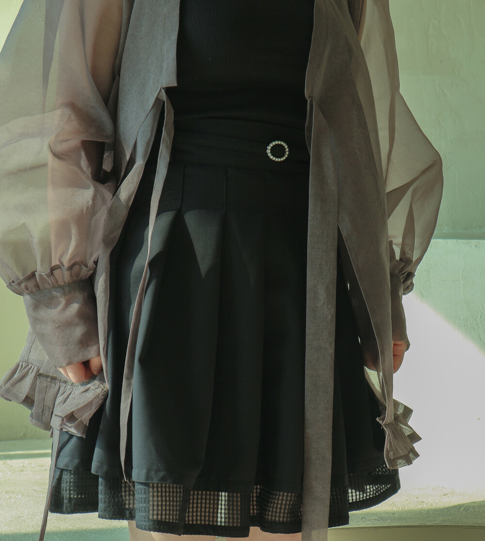 고급스럽고 클래식한 블랙으로 제작한 핀턱 허리치마 입니다.