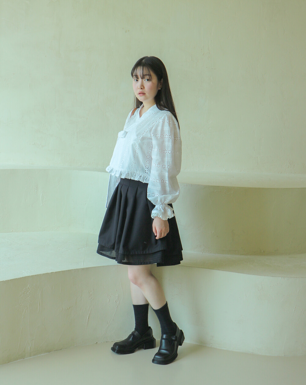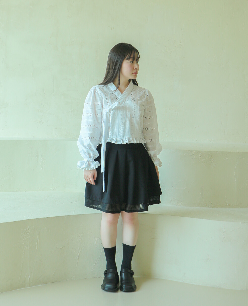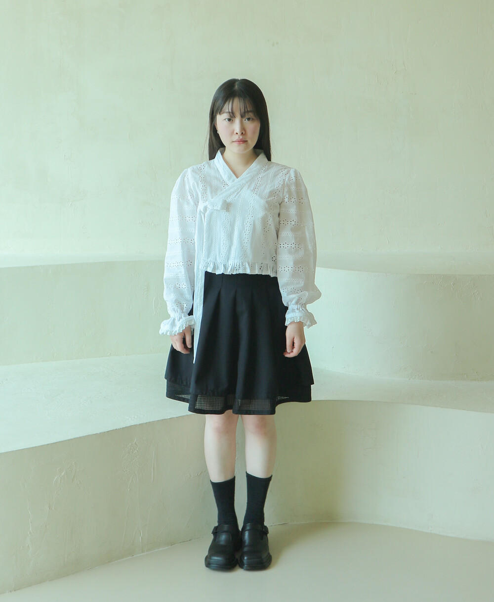 키 : 154cm / 기성복사이즈 : 66size / 기본사이즈 착용