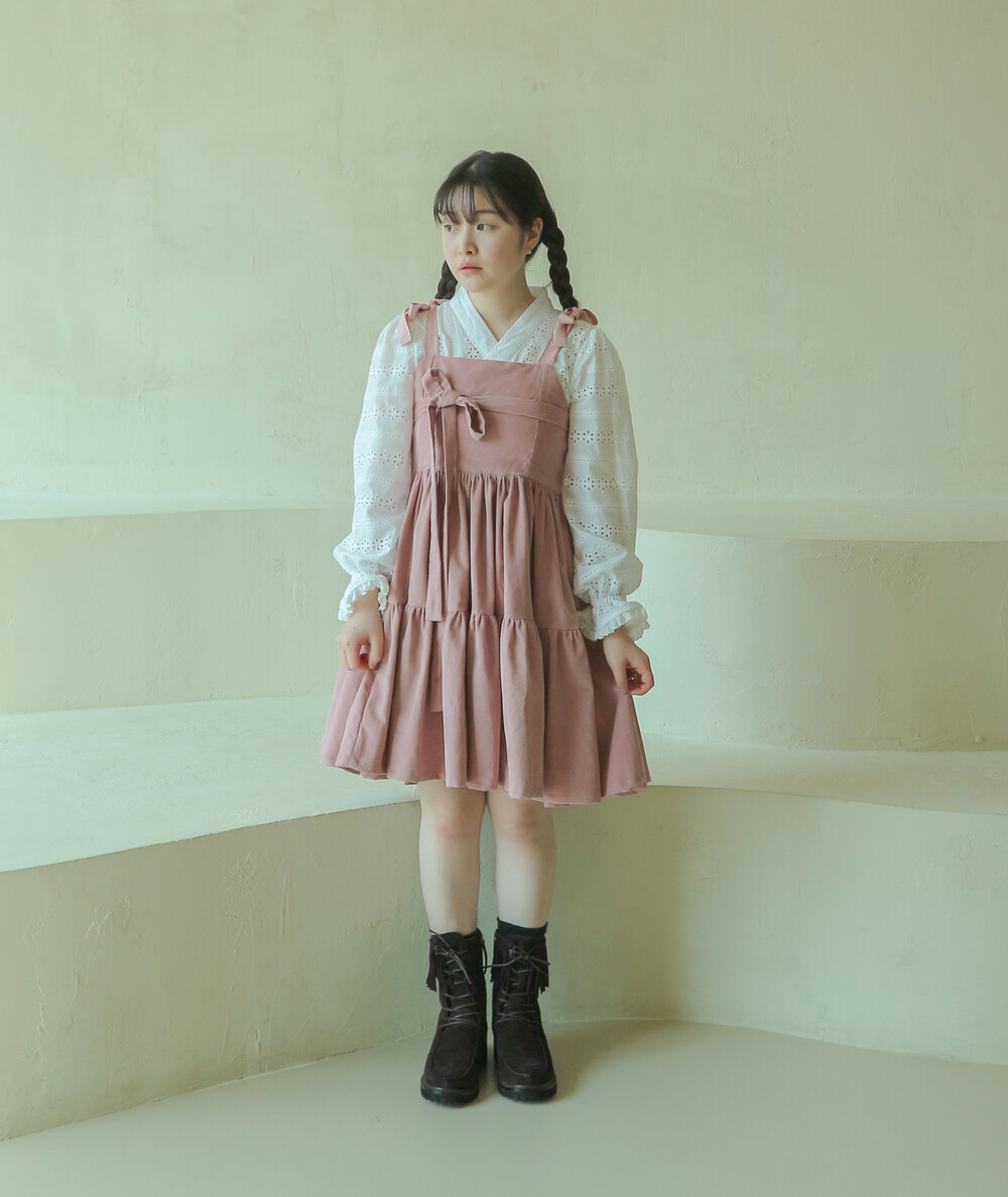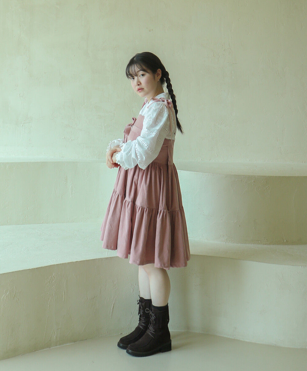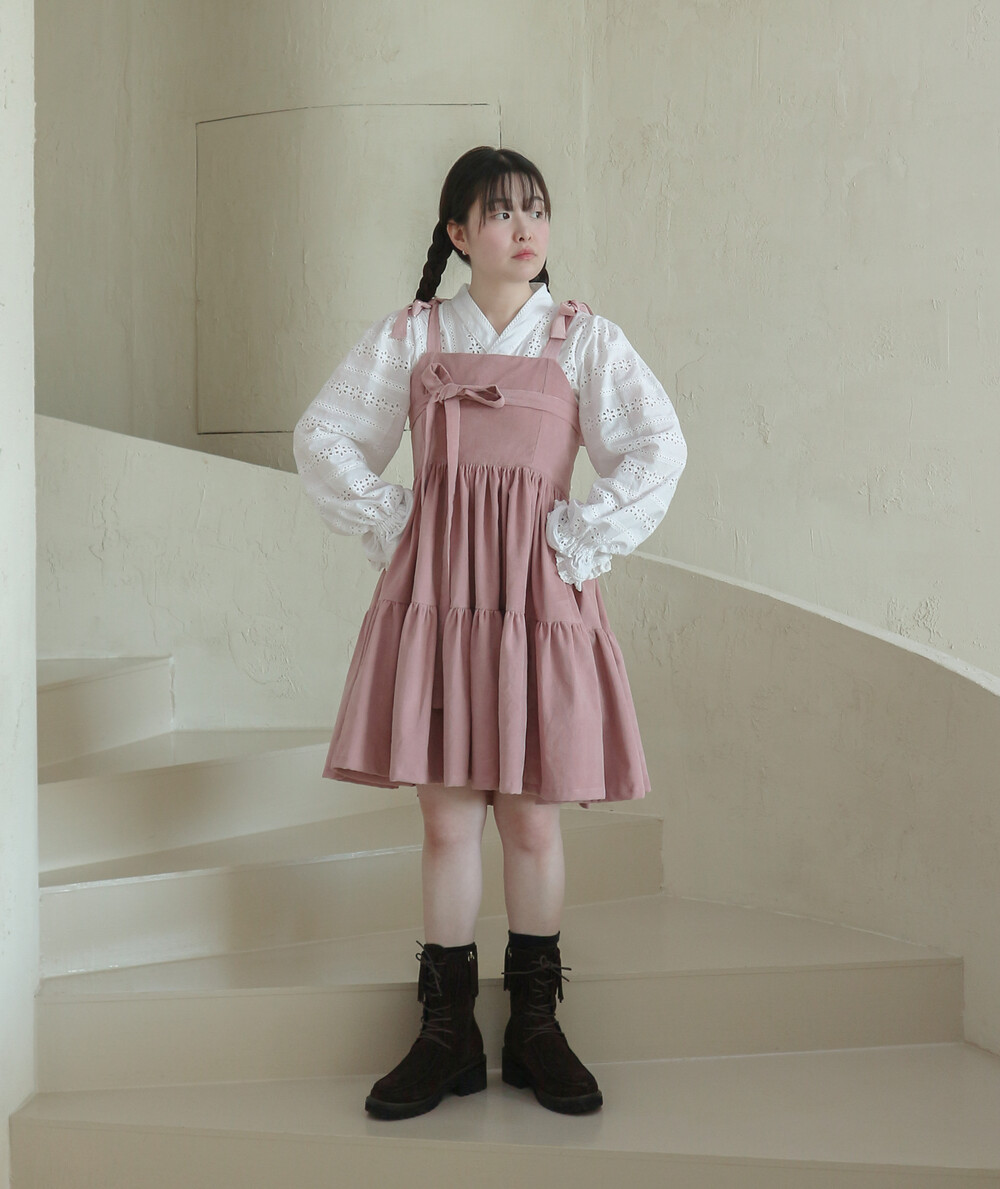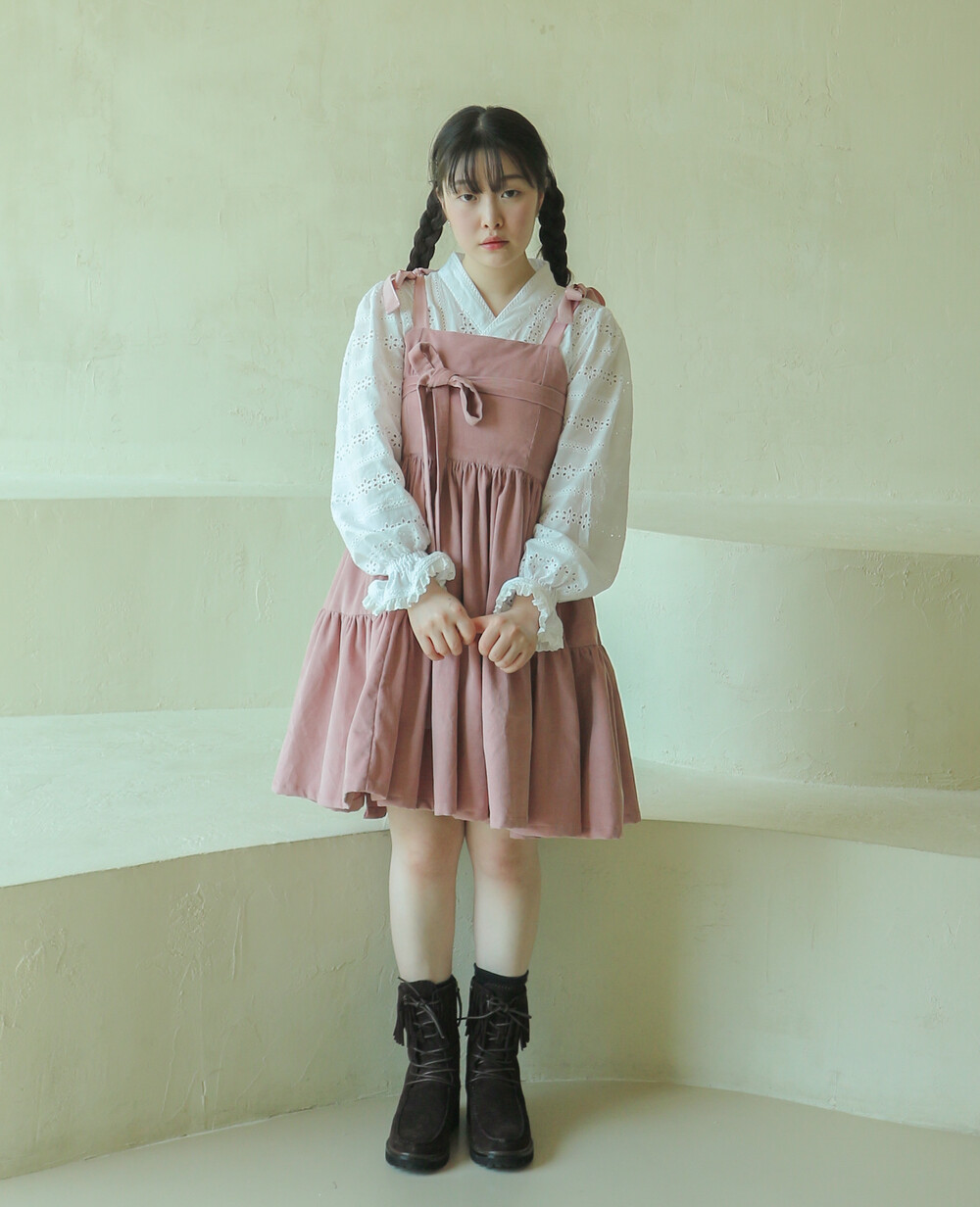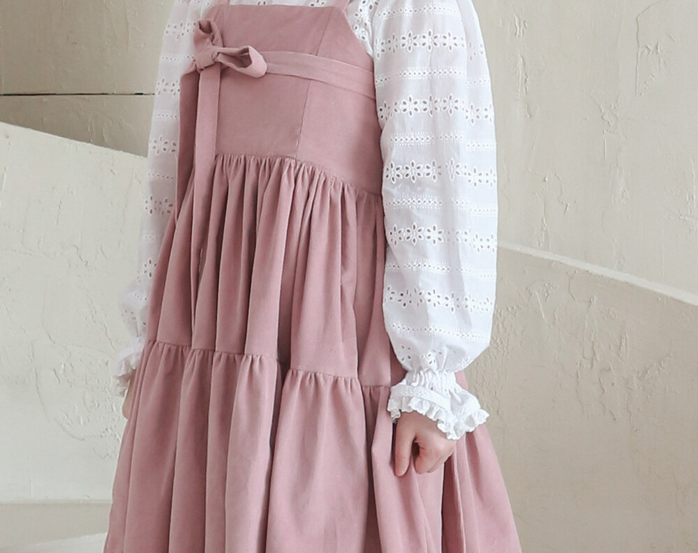 핑크 코듀로이 리본 원피스