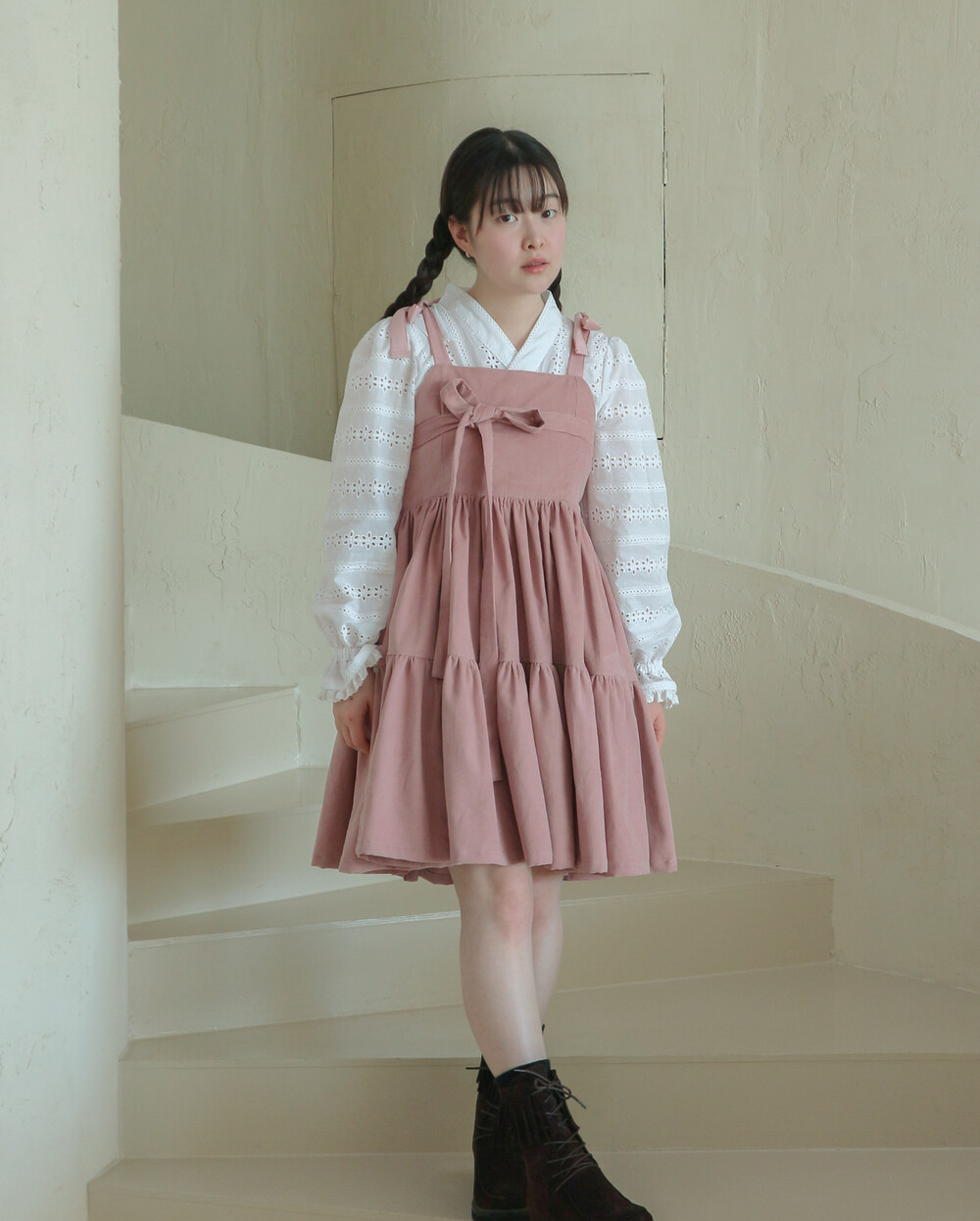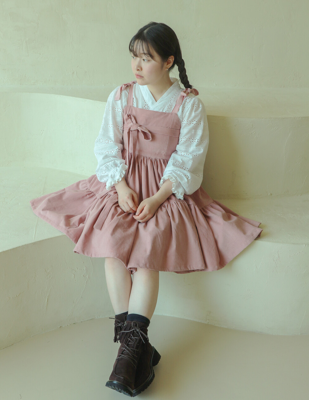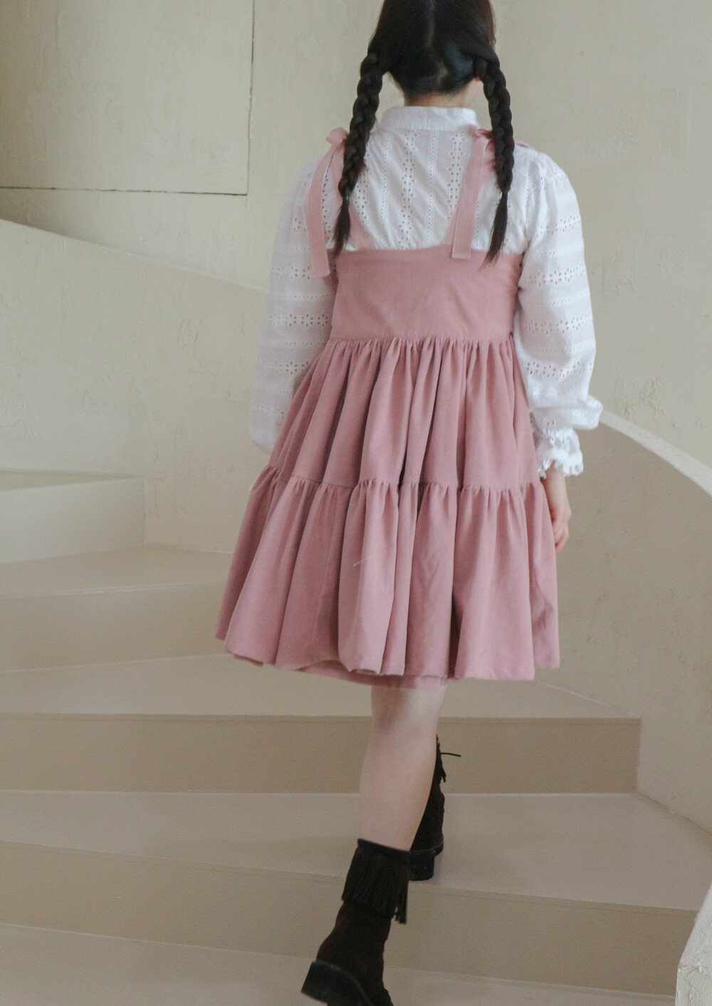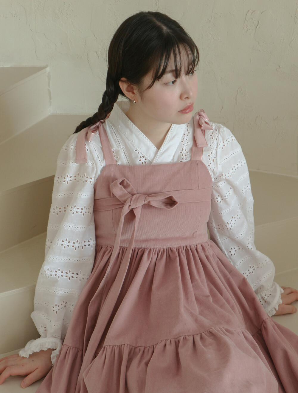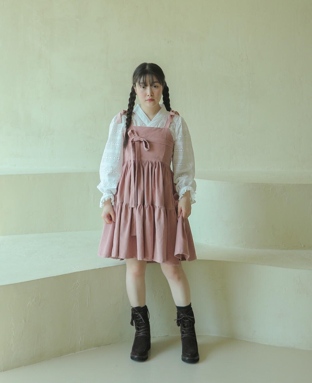 핑크 코듀로이 리본 원피스