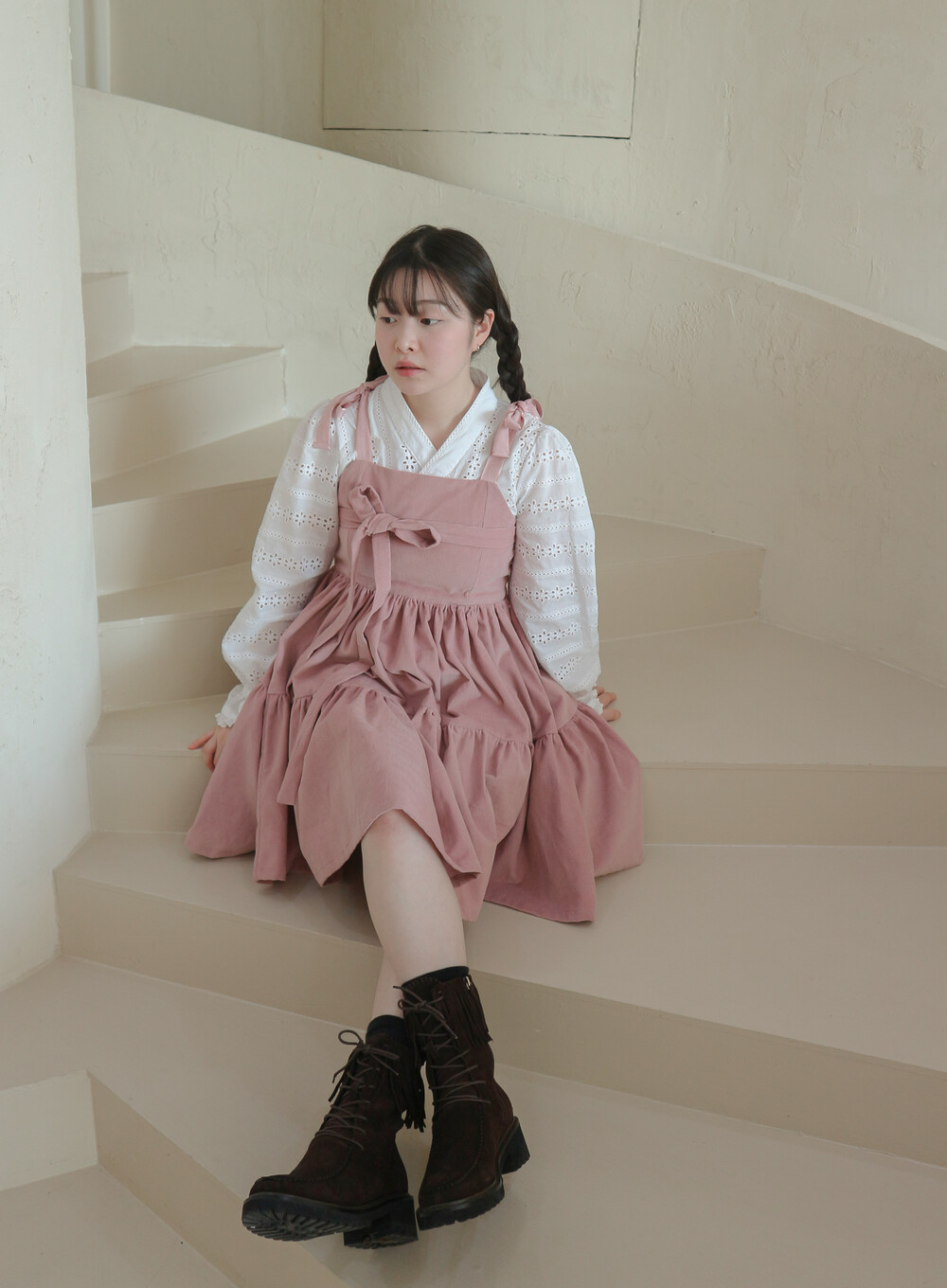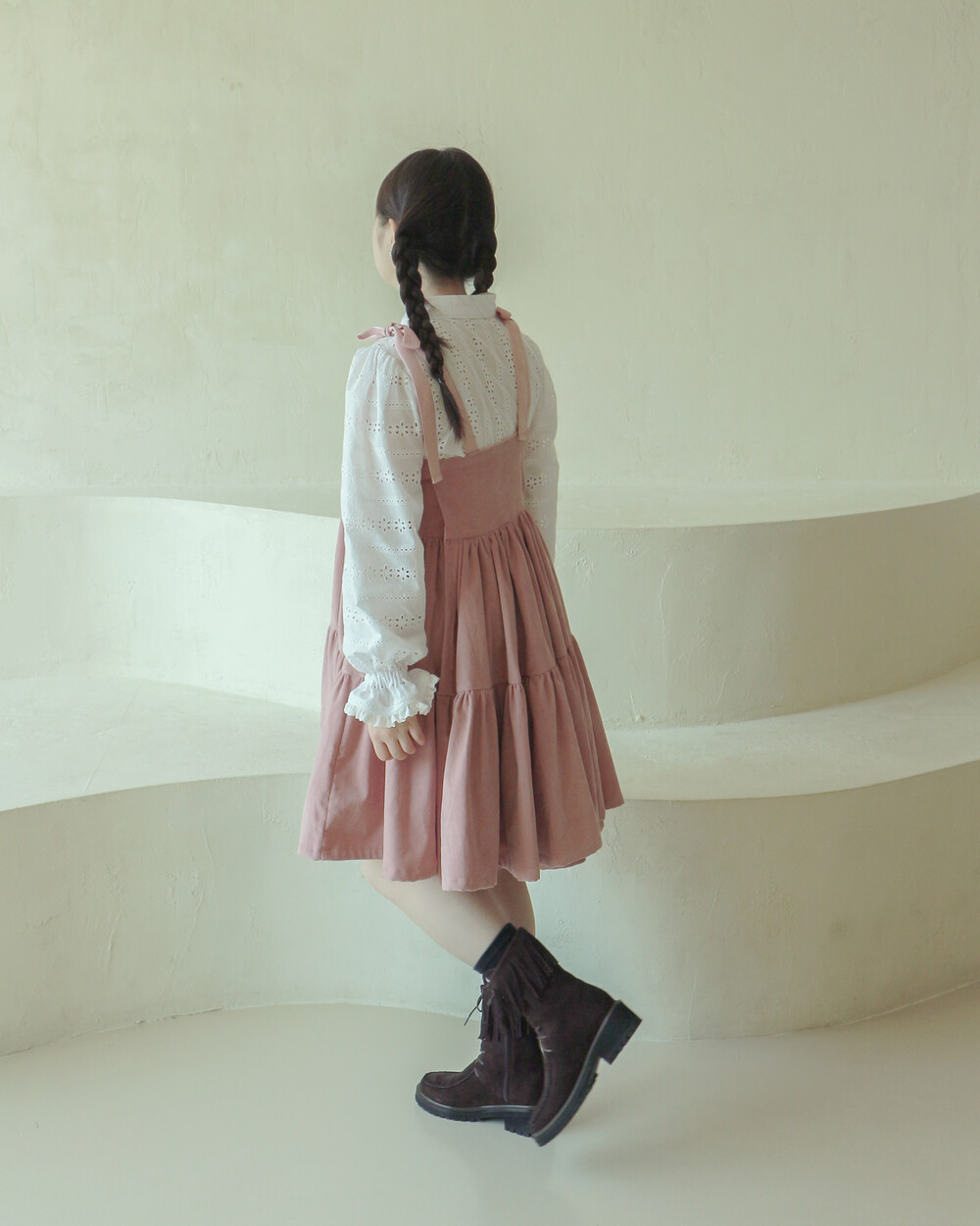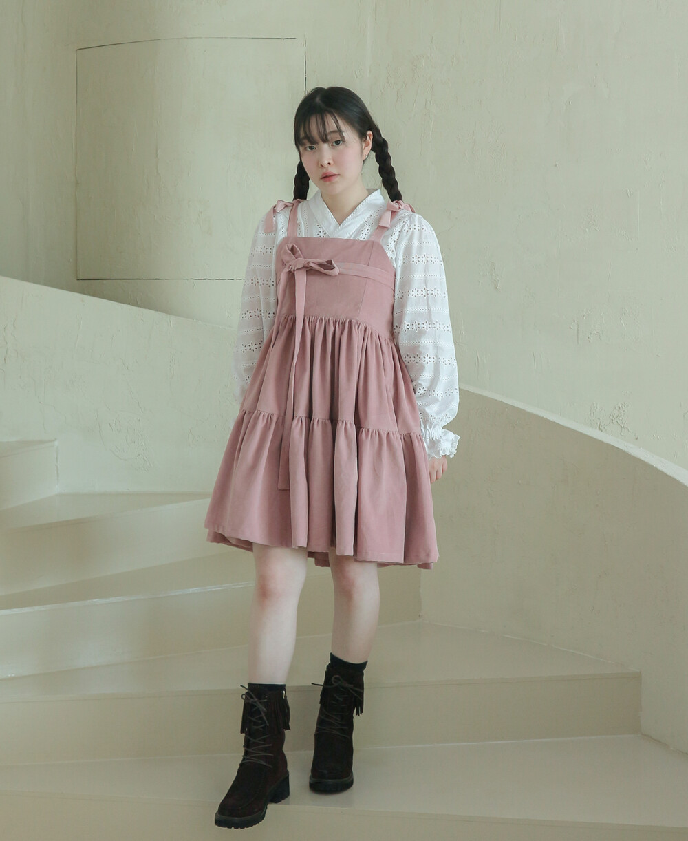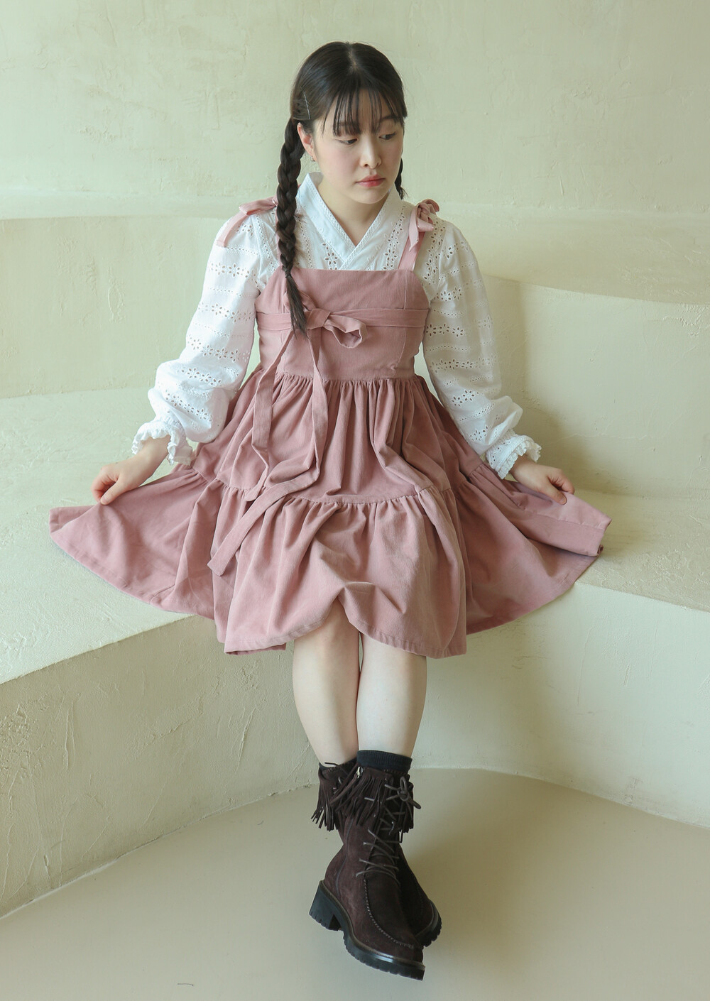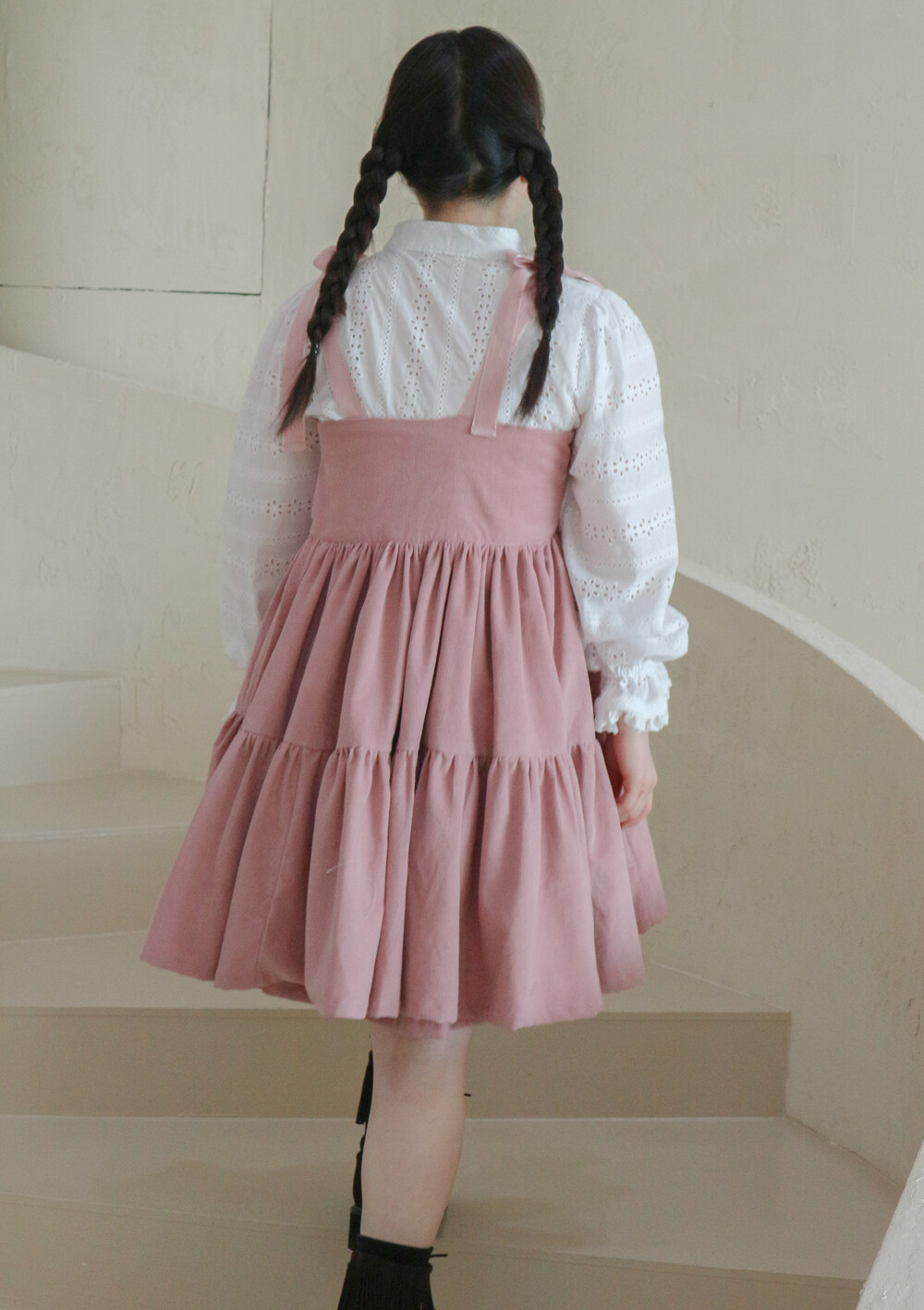 핑크 코듀로이 리본 원피스