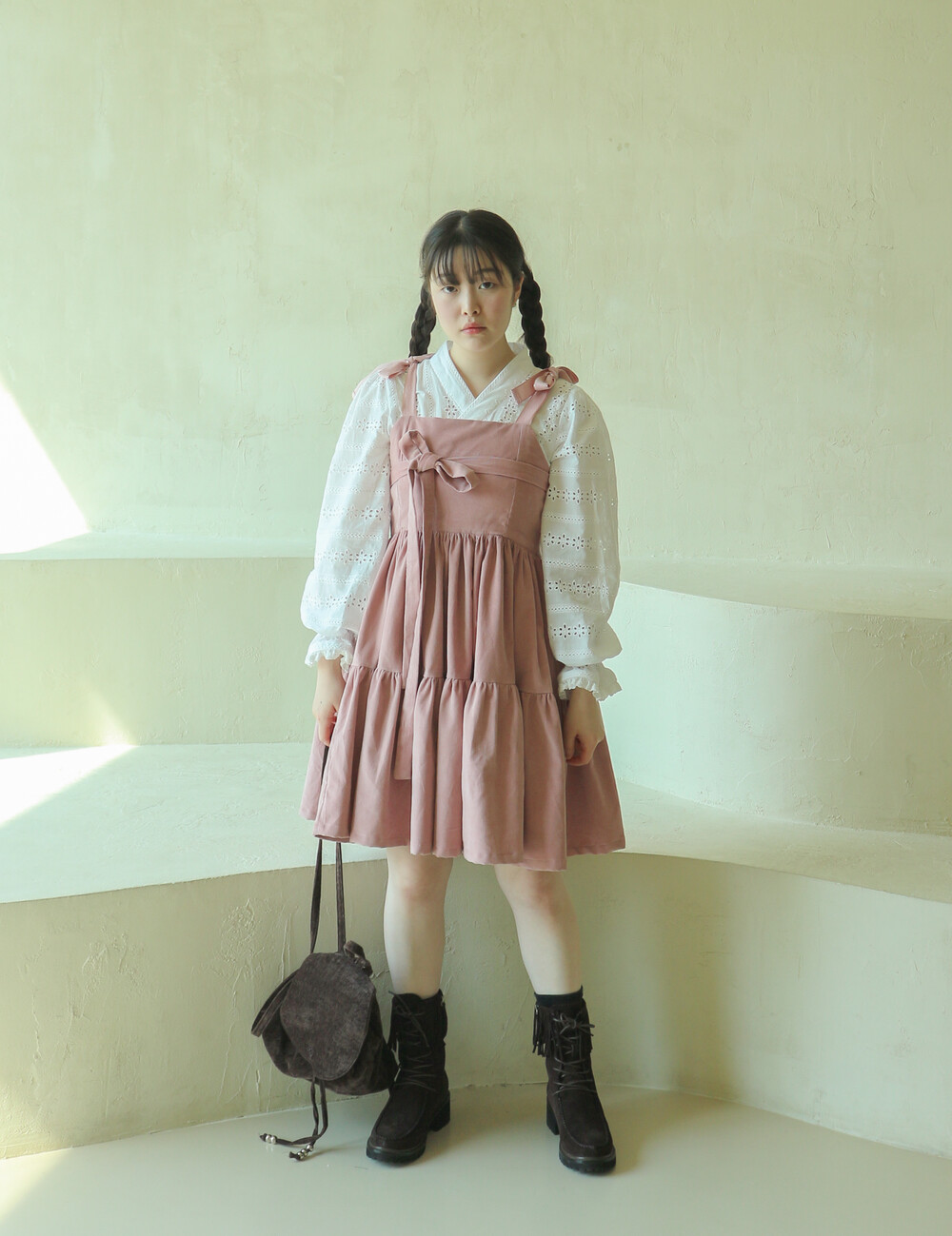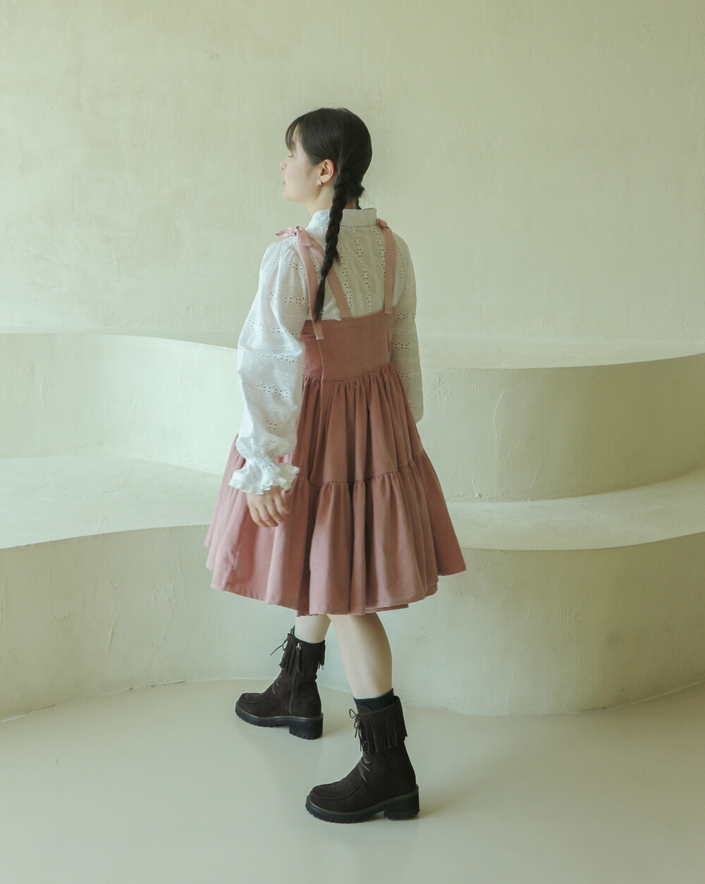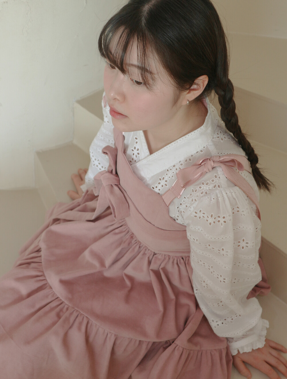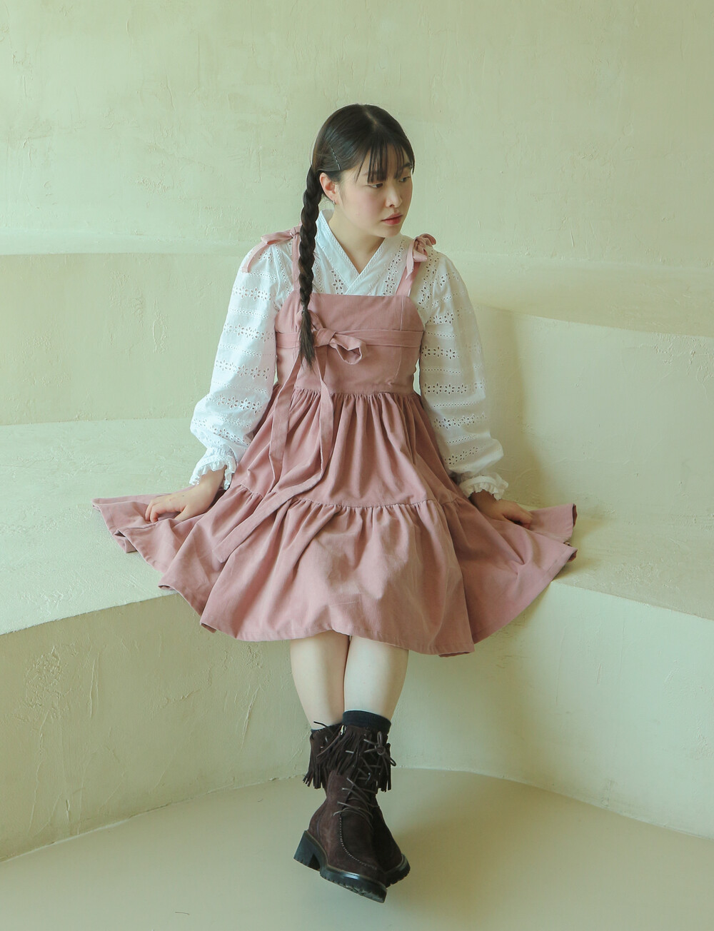 핑크 코듀로이 리본 원피스