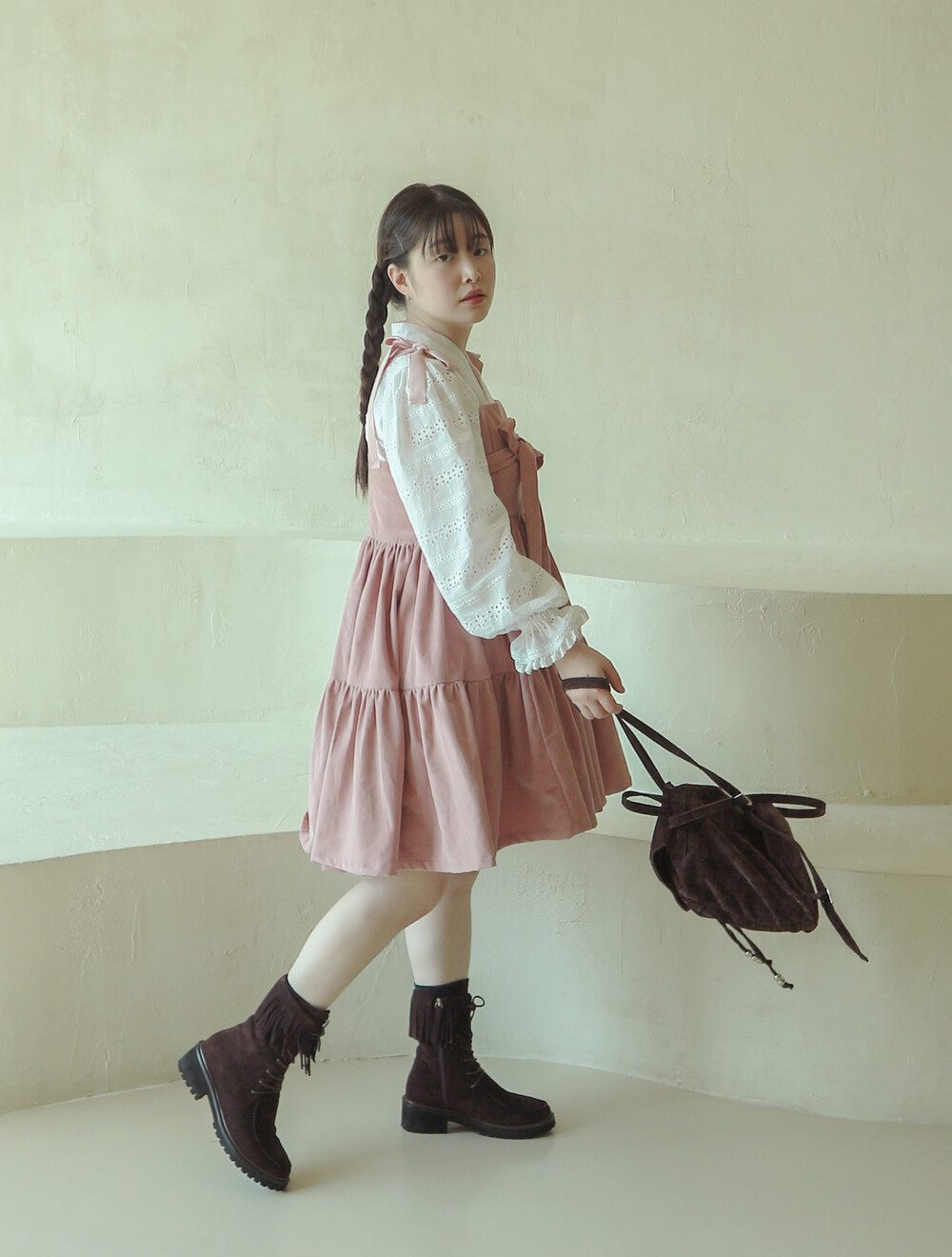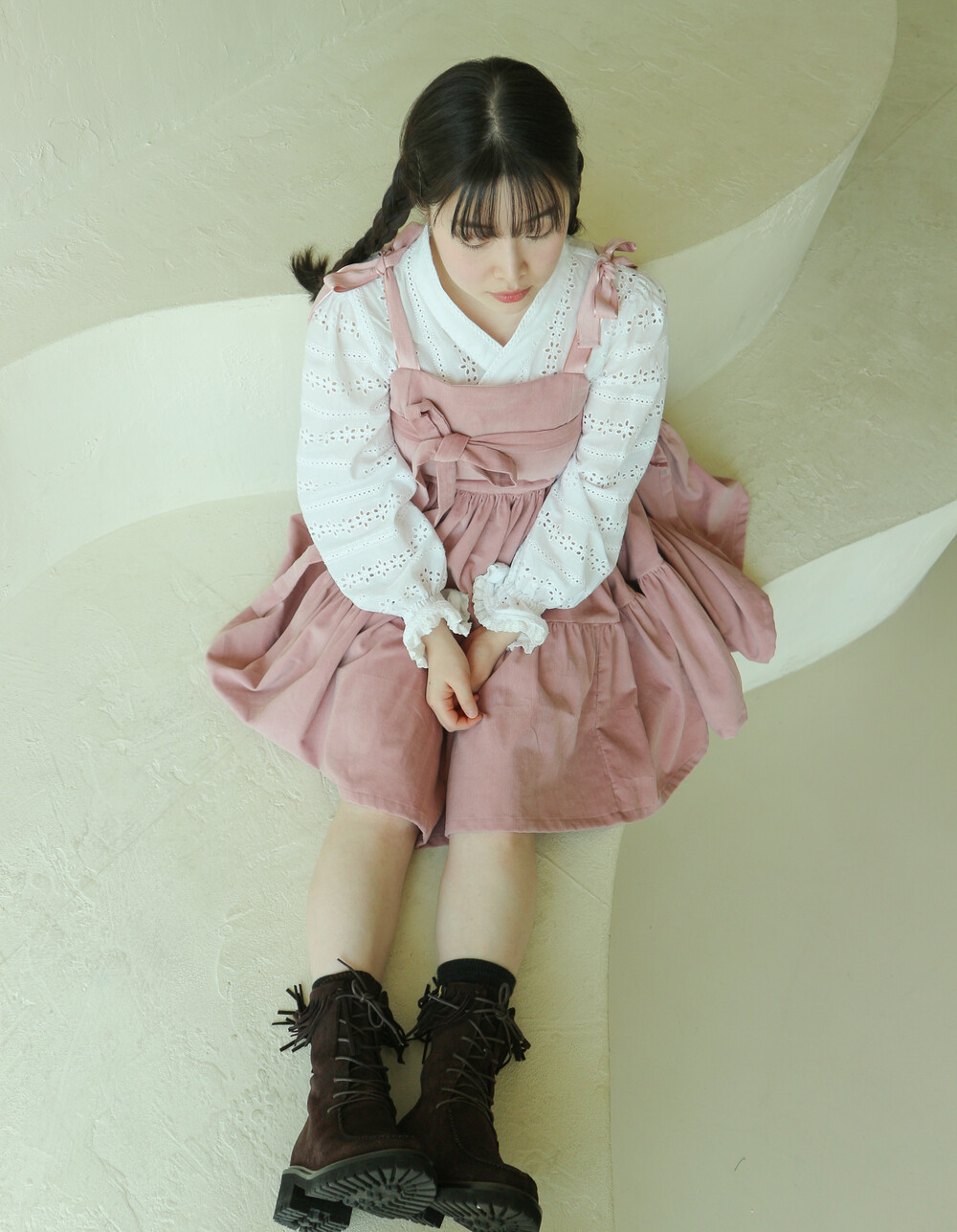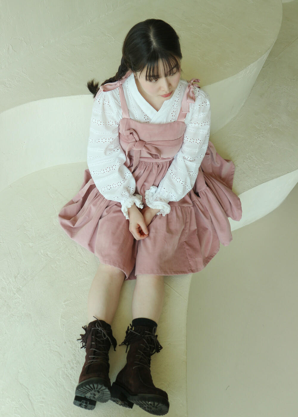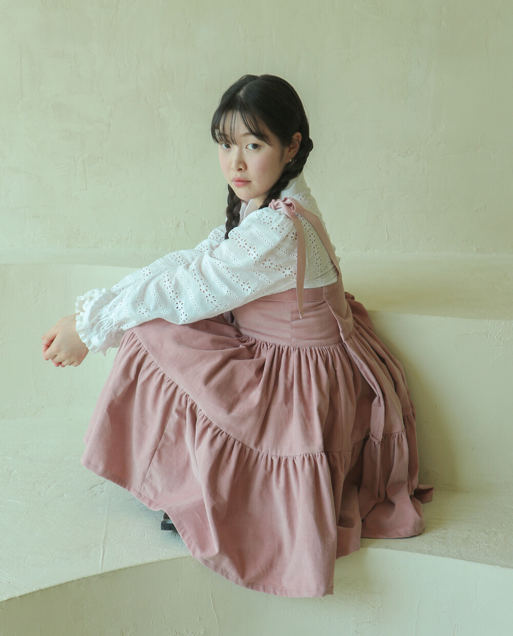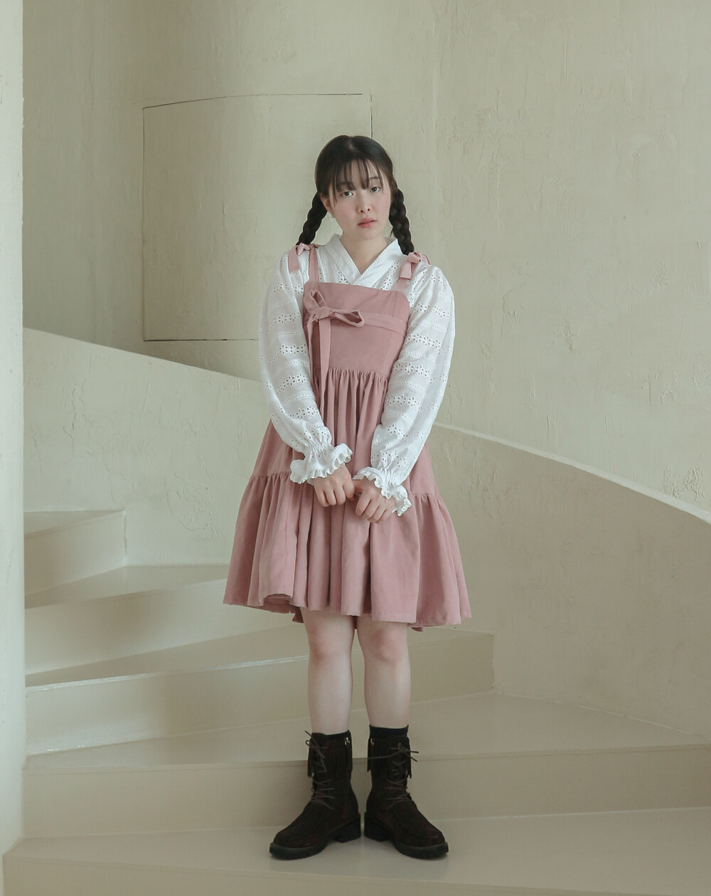 핑크 코듀로이 리본 원피스