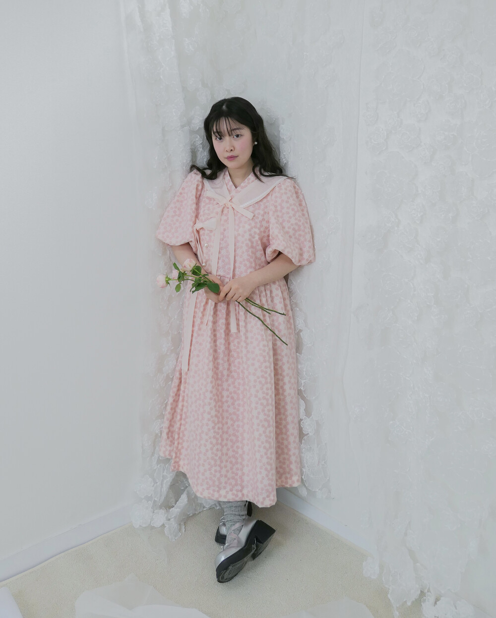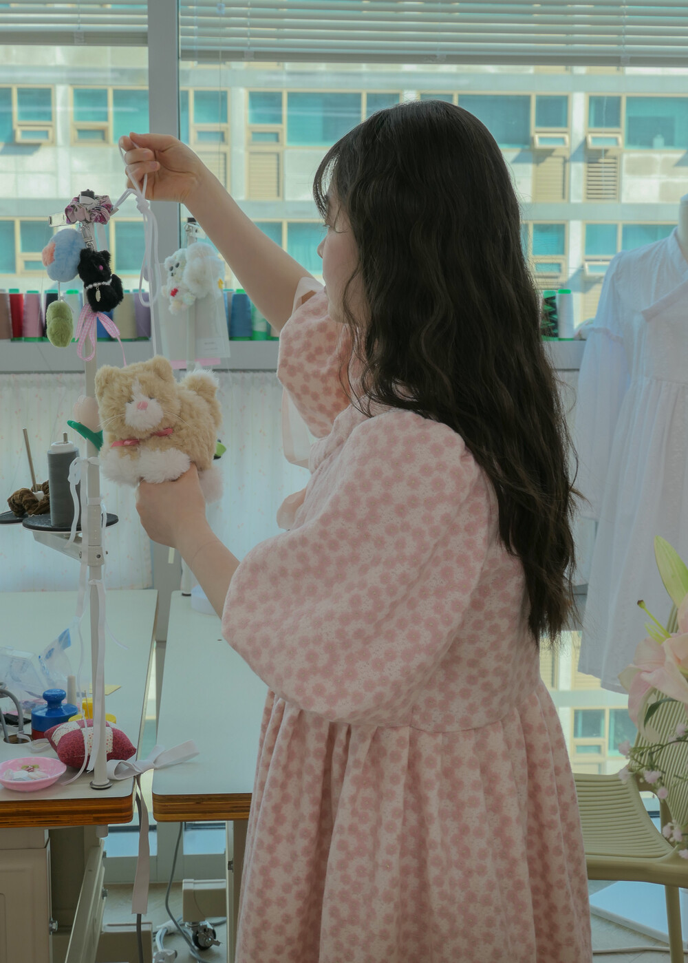 소매는 풍성한 벌룬 소매로 5부 정도의 기장으로 제작하여 다양한 겨울이너와