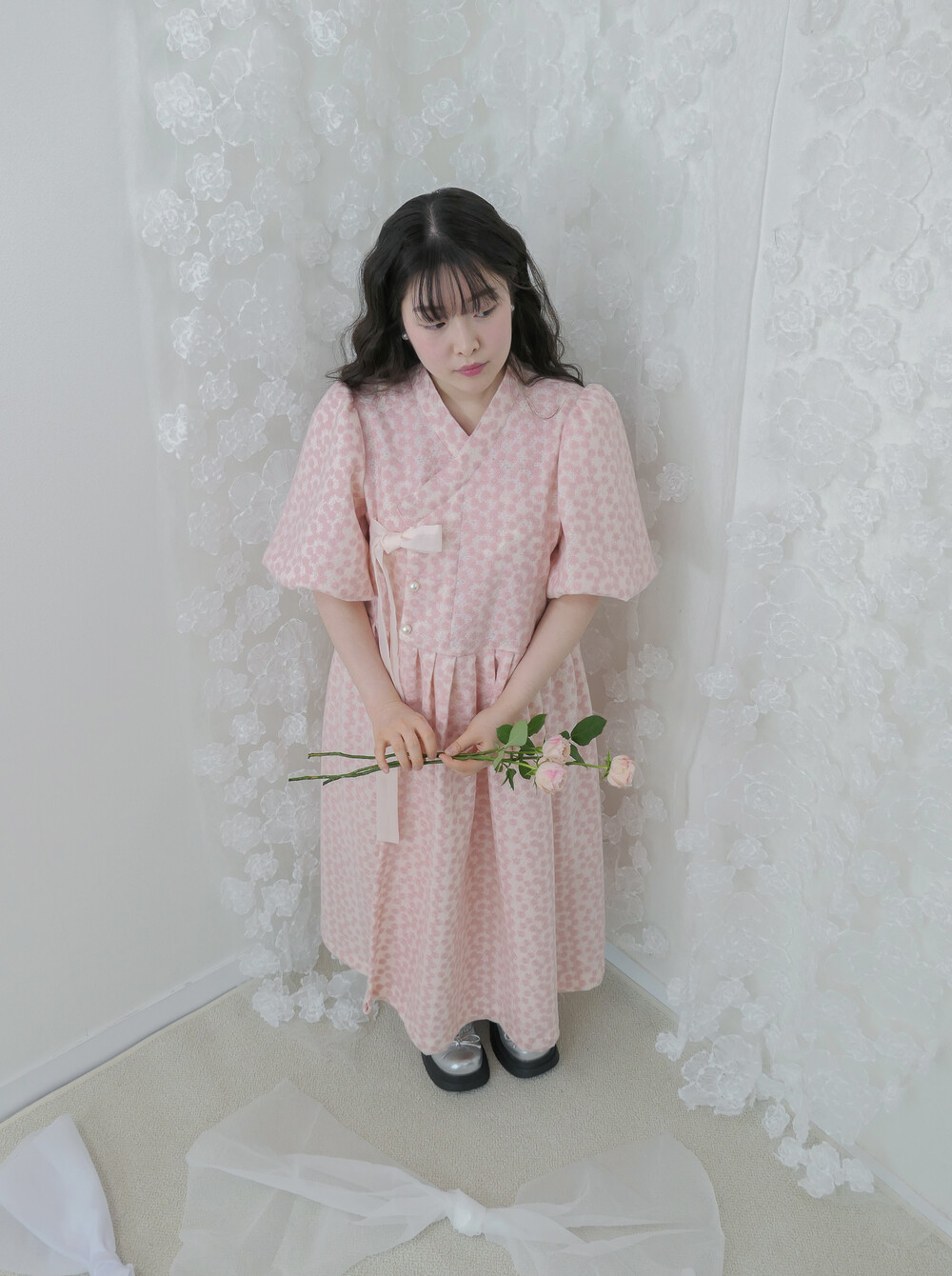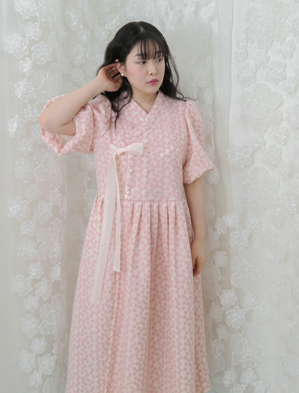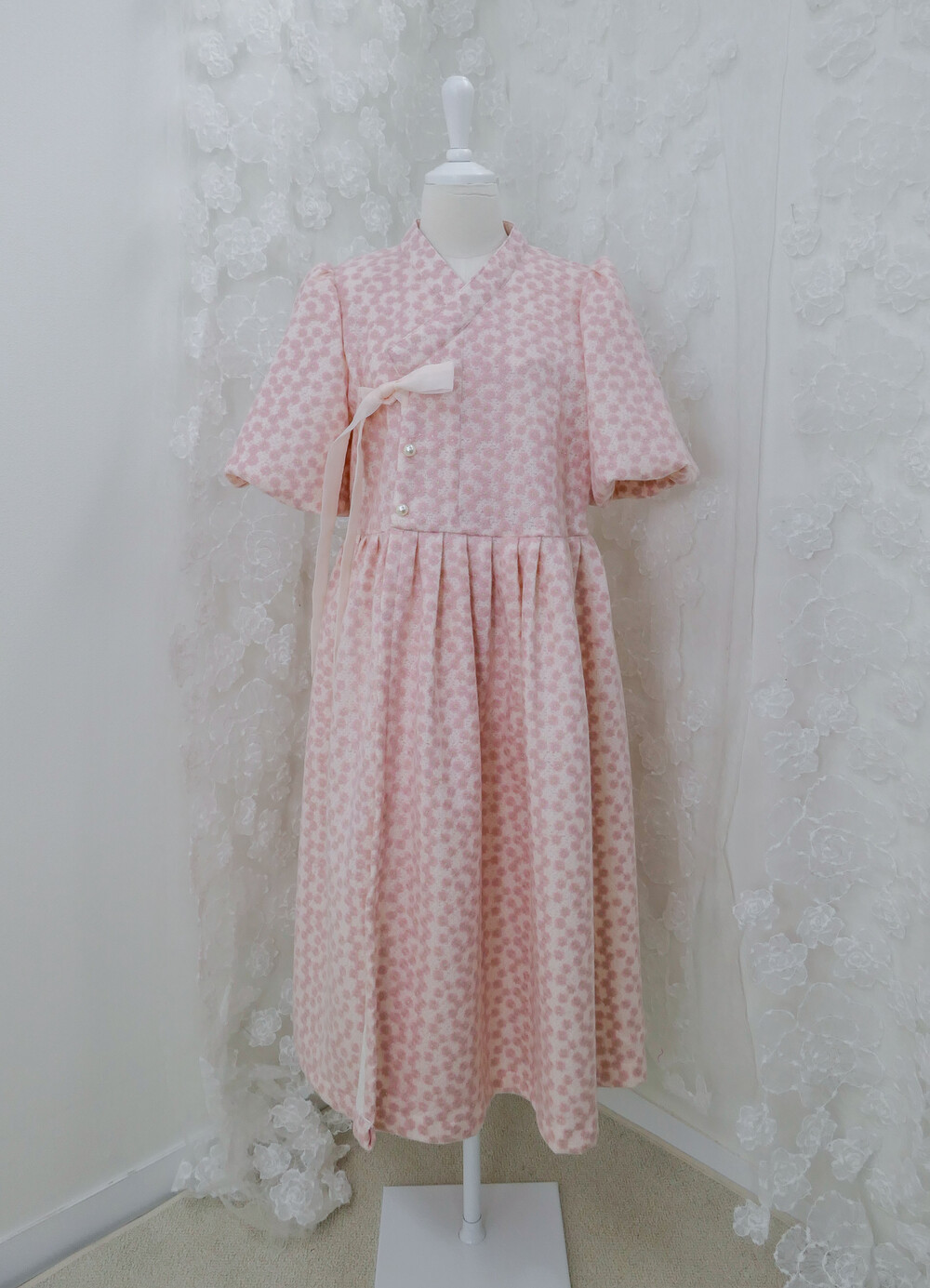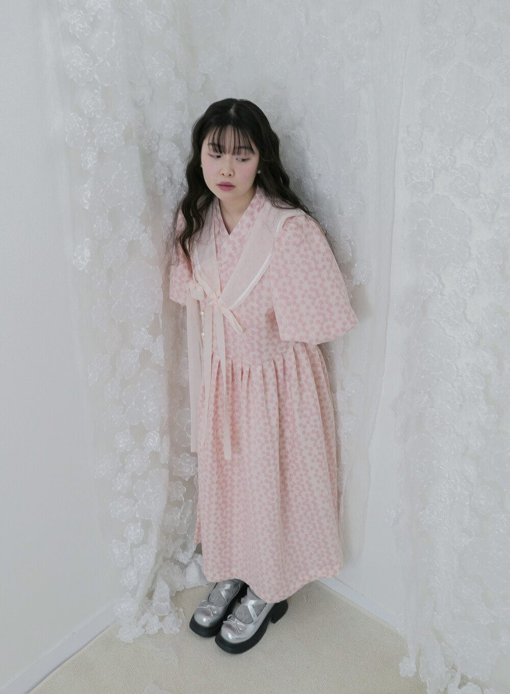 24 눈꽃 핑크 철릭 원피스 & 핑크 등걸이 배자