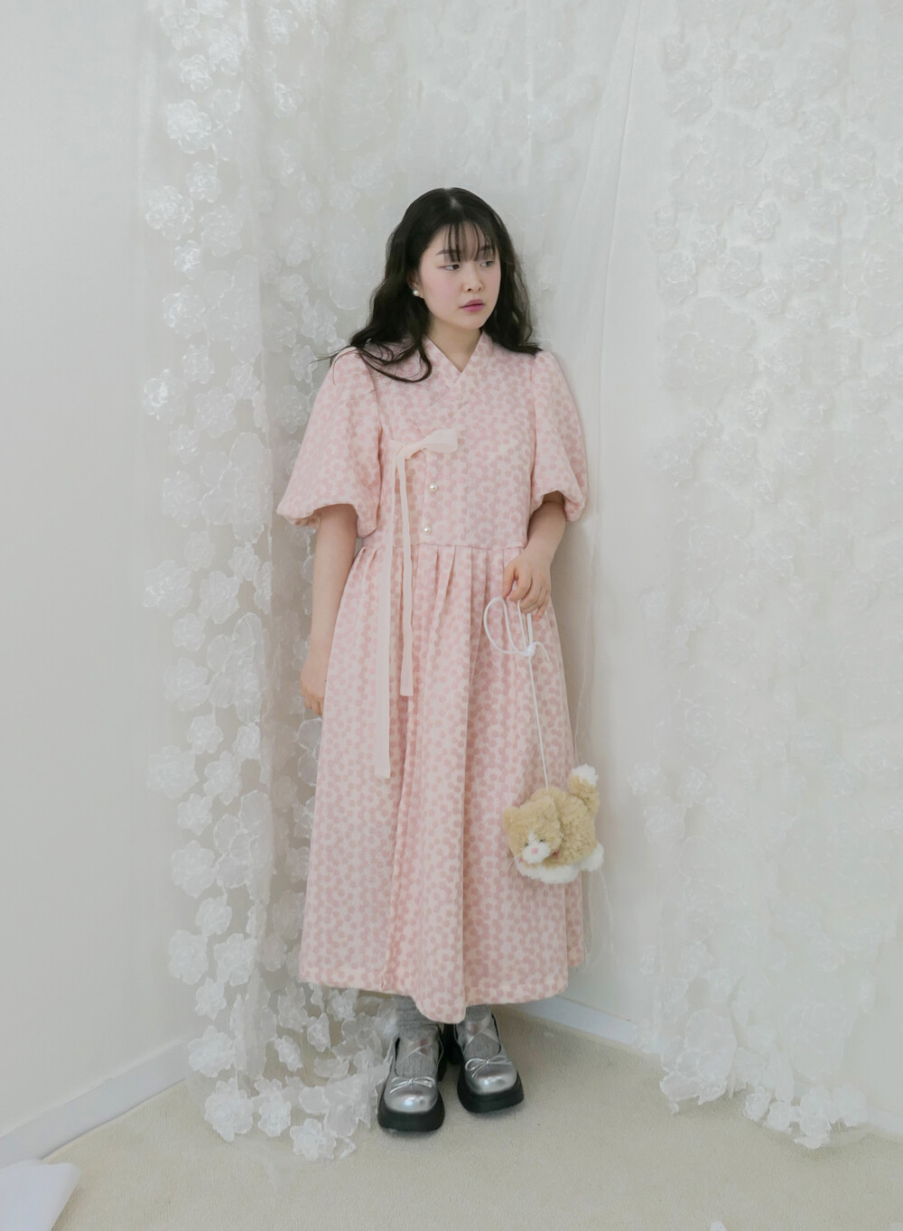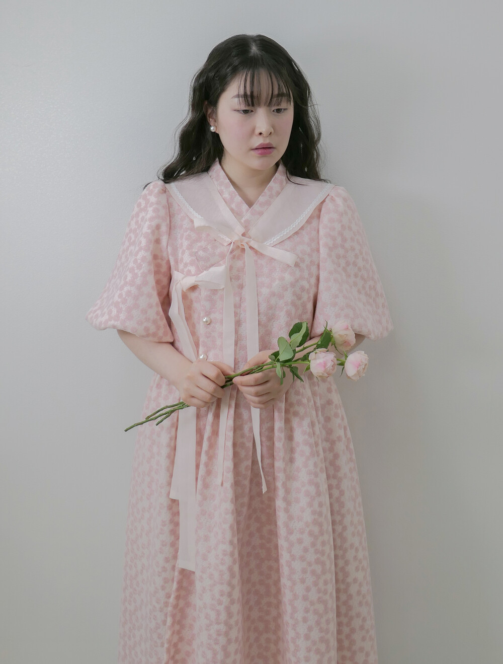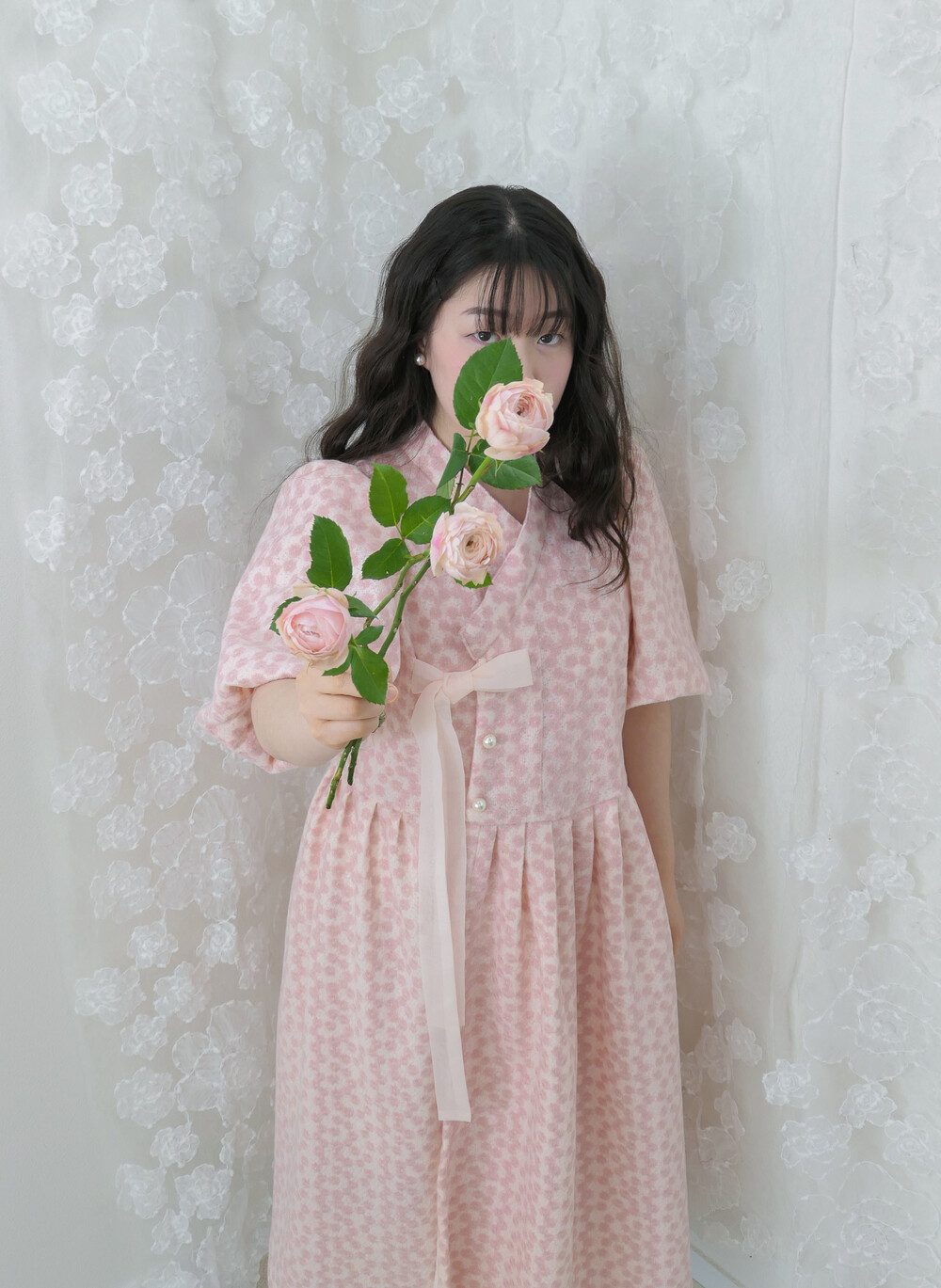 24 눈꽃 핑크 철릭 원피스 & 핑크 등걸이 배자