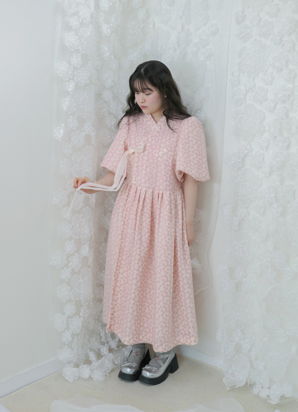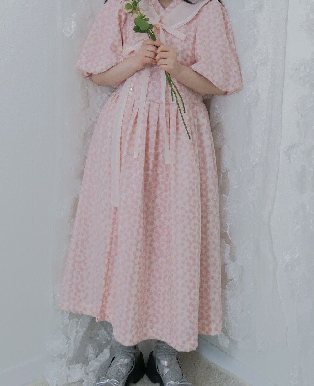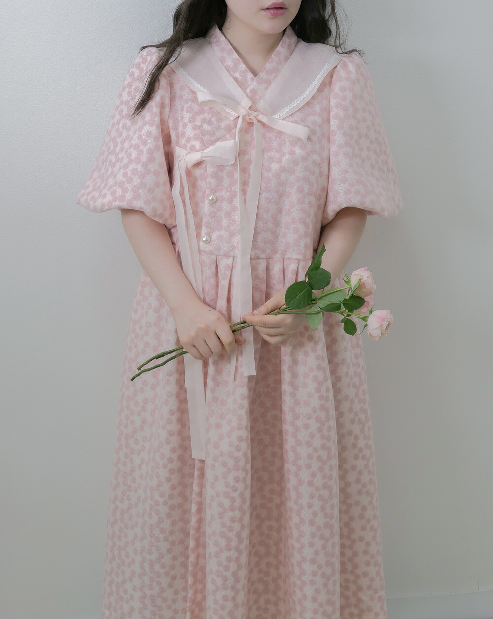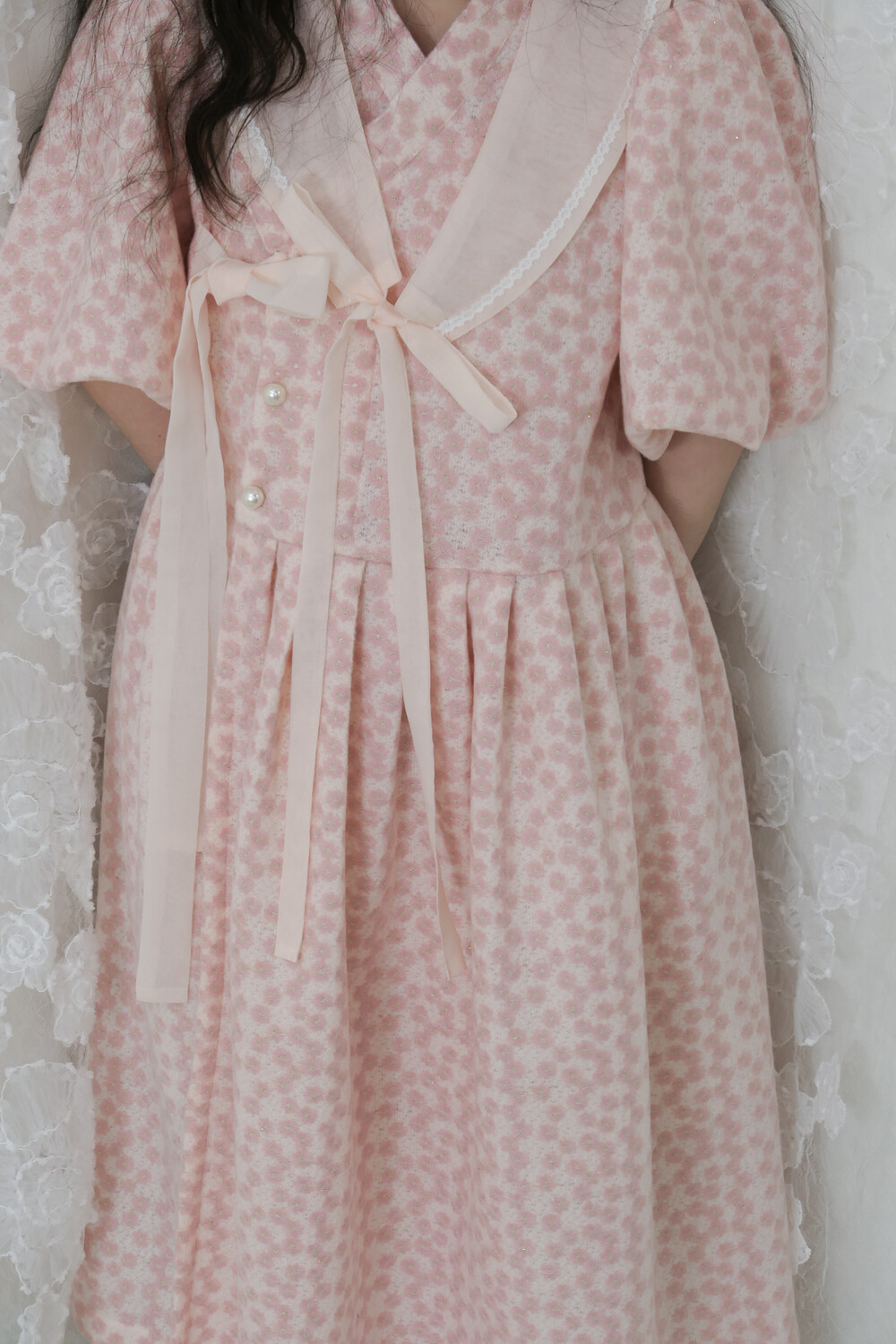 24 눈꽃 핑크 철릭 원피스 & 핑크 등걸이 배자