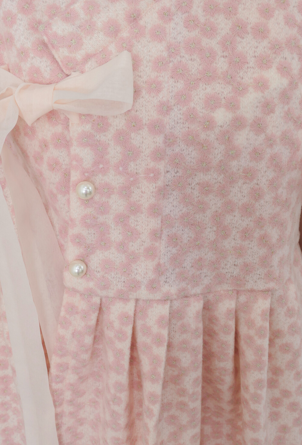 니트 소재가 두겹으로 직조 되어 늘어짐이 없고, 핑크색 눈꽃에 금사가 섞여있어