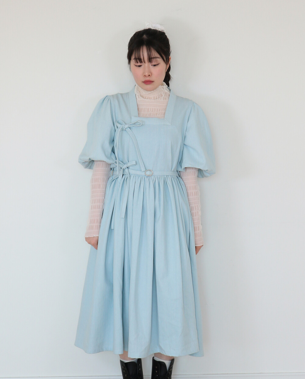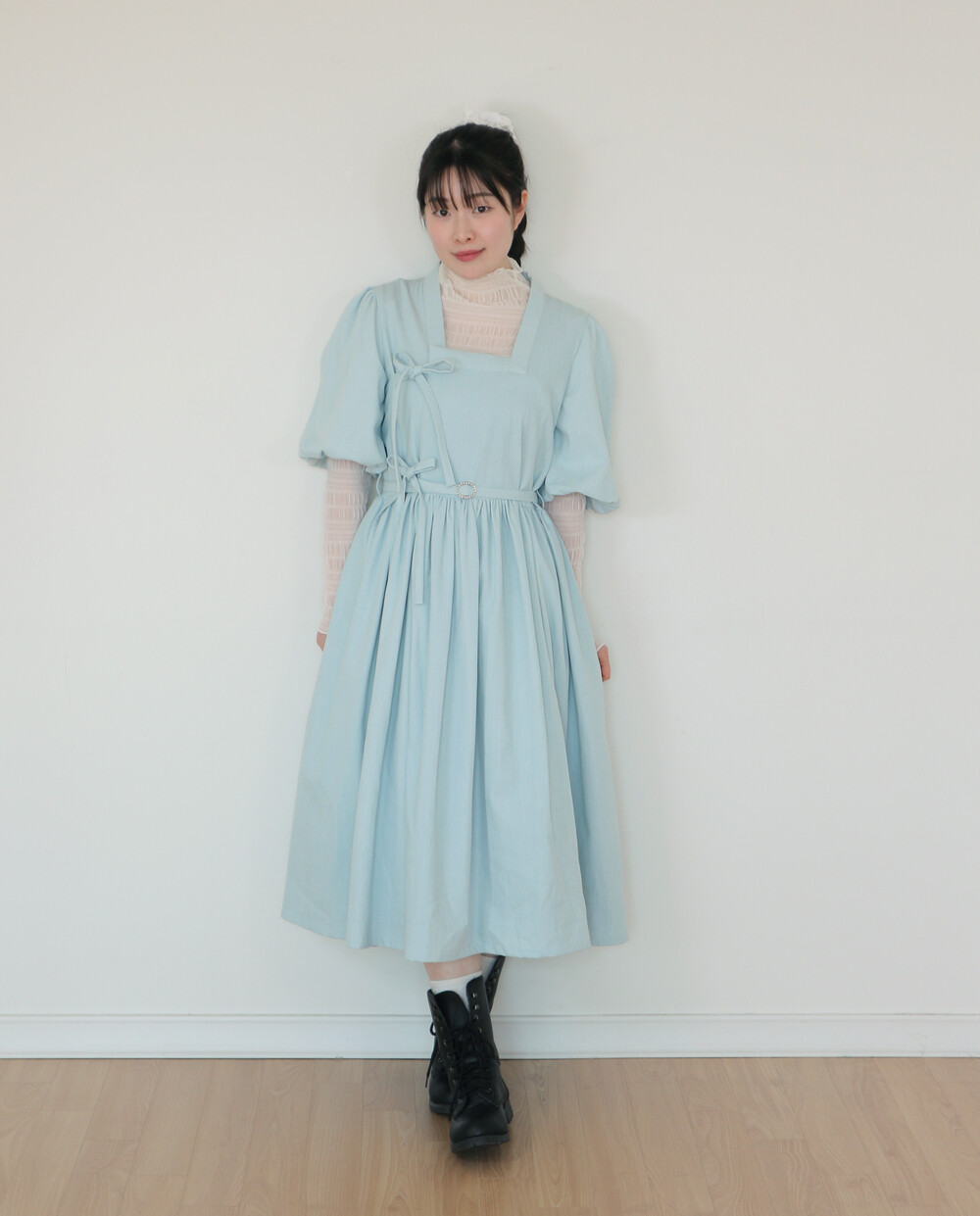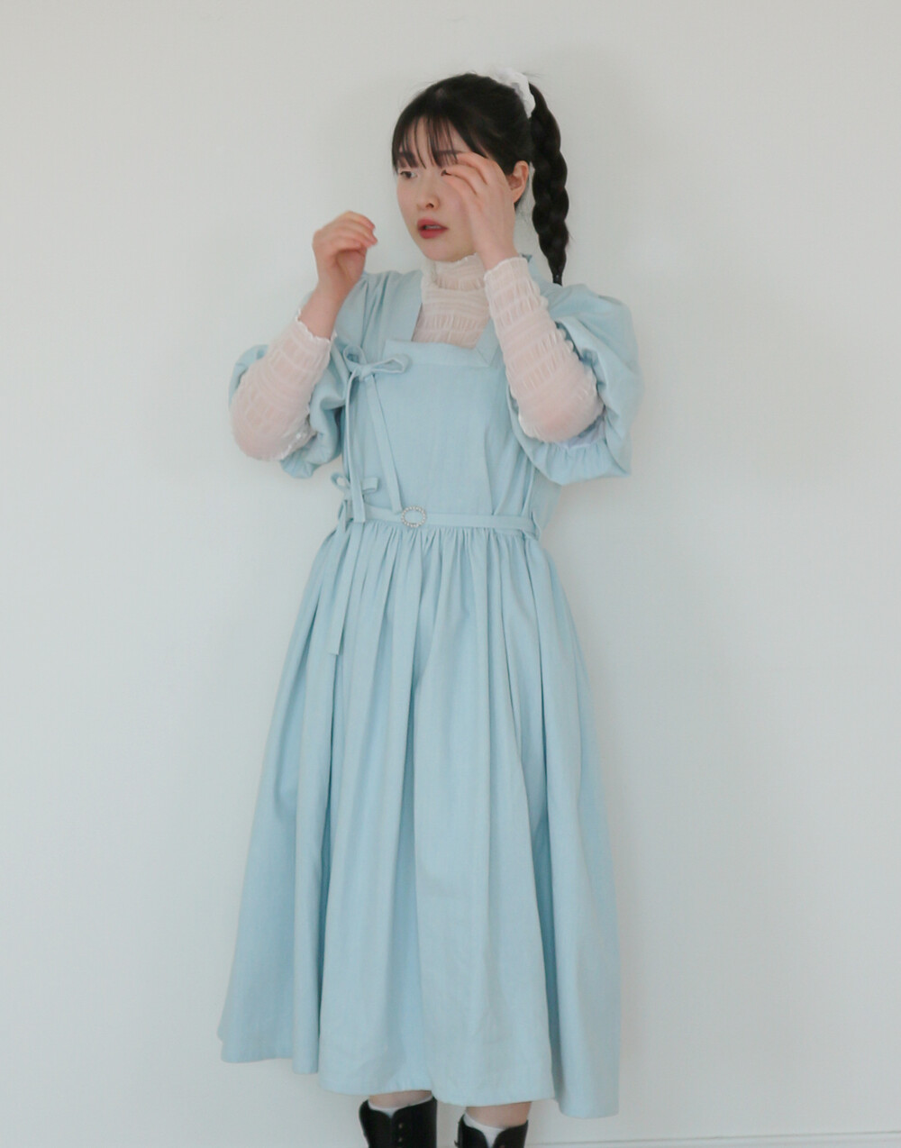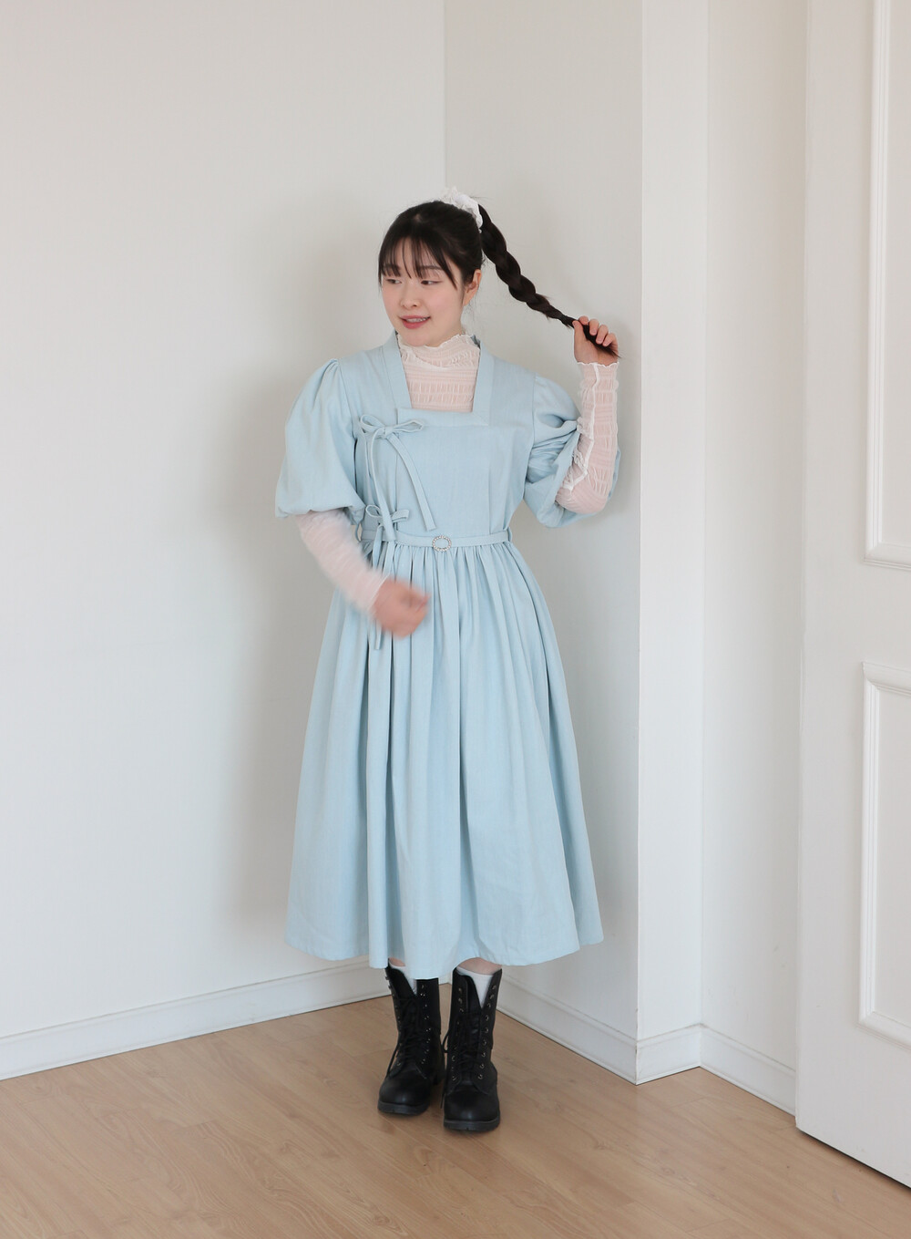 봄에 입기 좋은 연청 원피스는 기존의 청 원단보다 가벼운 소재로 제작되어 클래식하면서도 데일리하게 입을 수 있는 한복 원피스입니다.