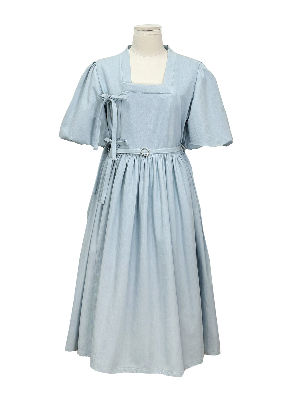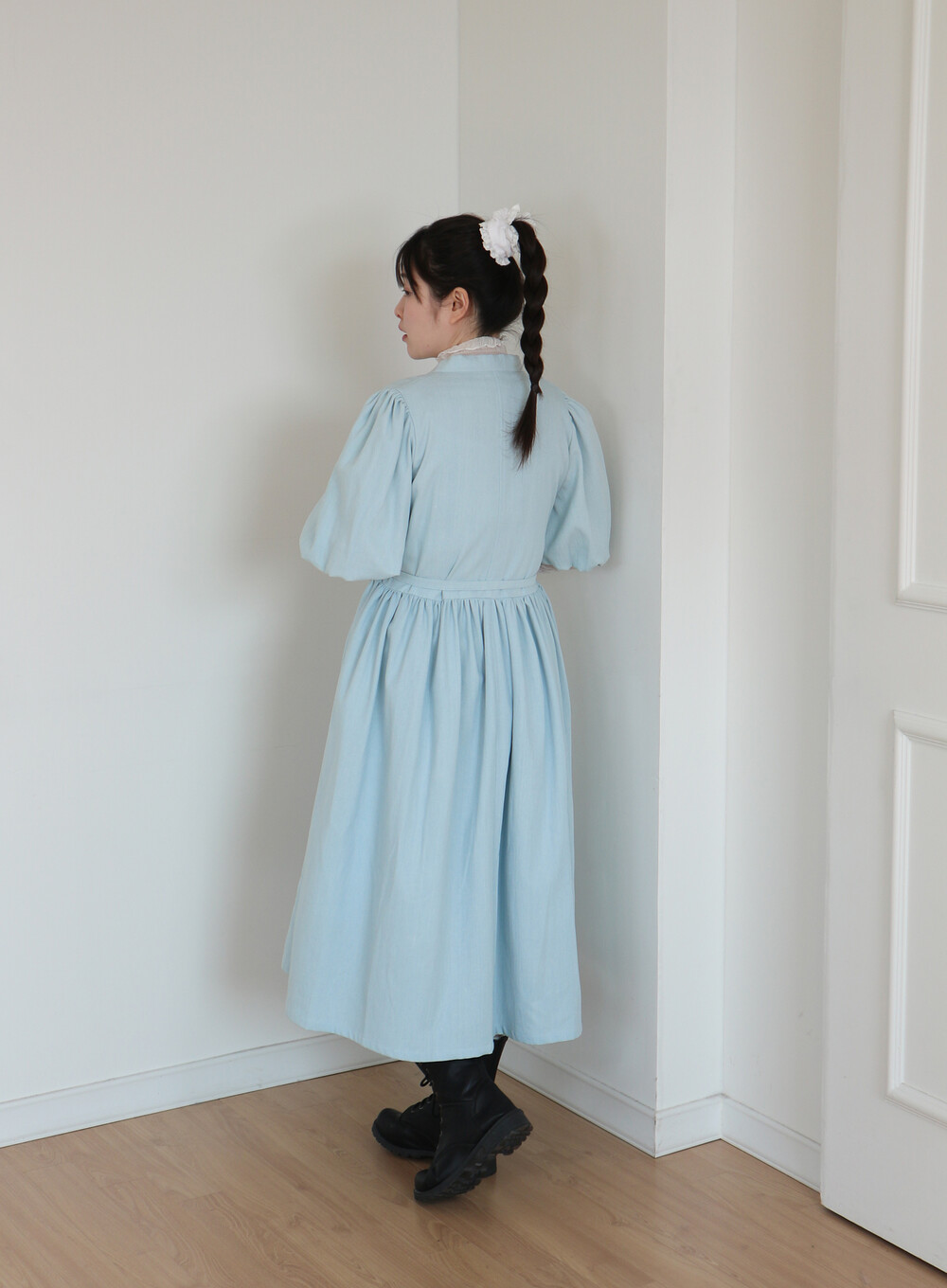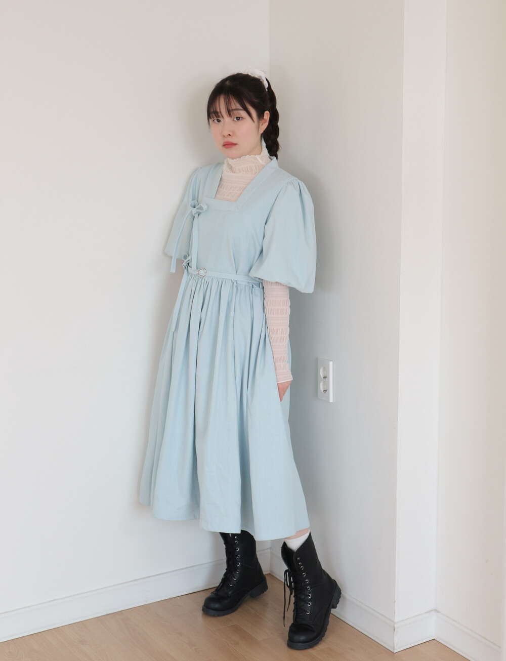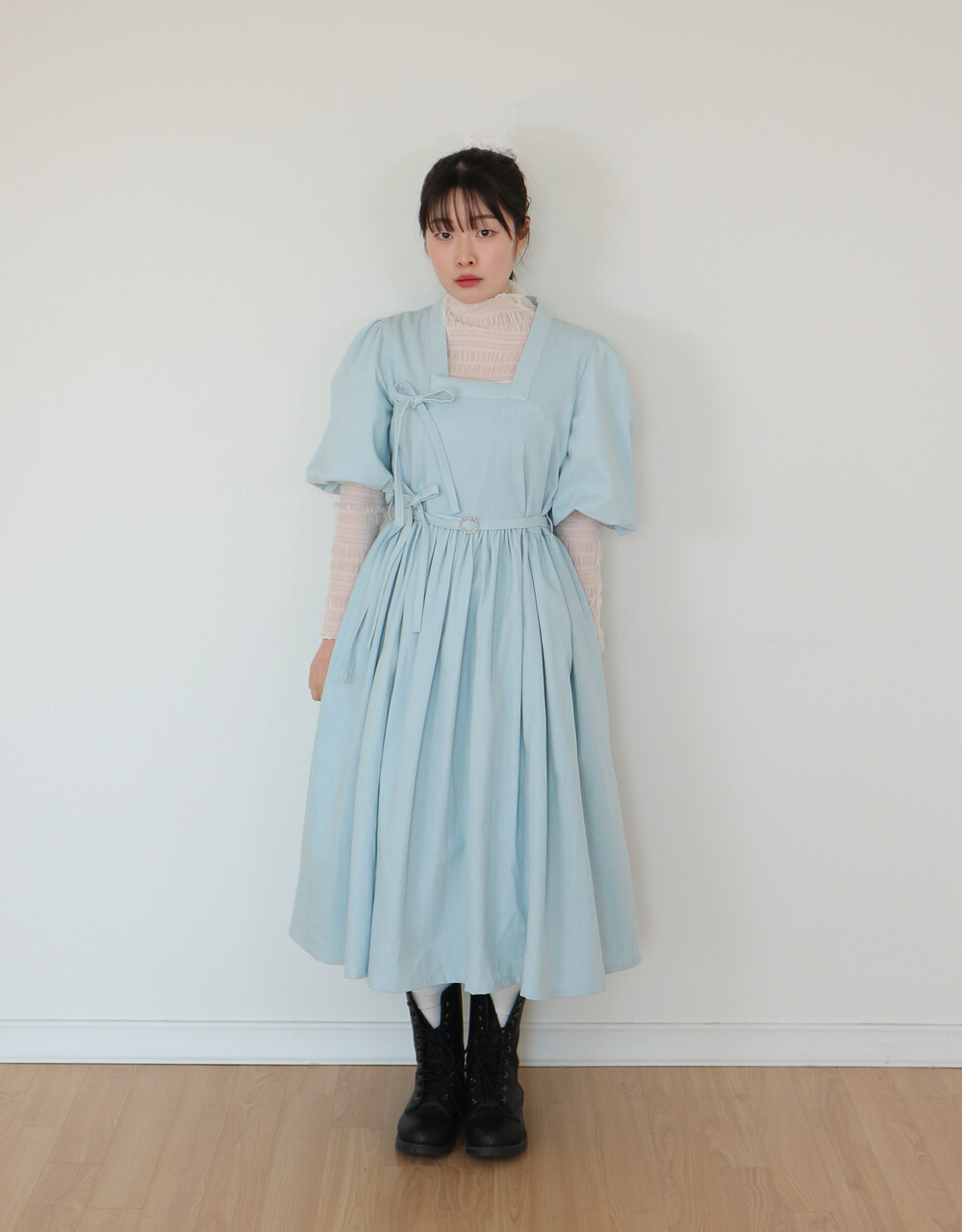 봄에 입기 좋은 연청 원피스는 기존의 청 원단보다 가벼운 소재로 제작되어 클래식하면서도 데일리하게 입을 수 있는 한복 원피스입니다.