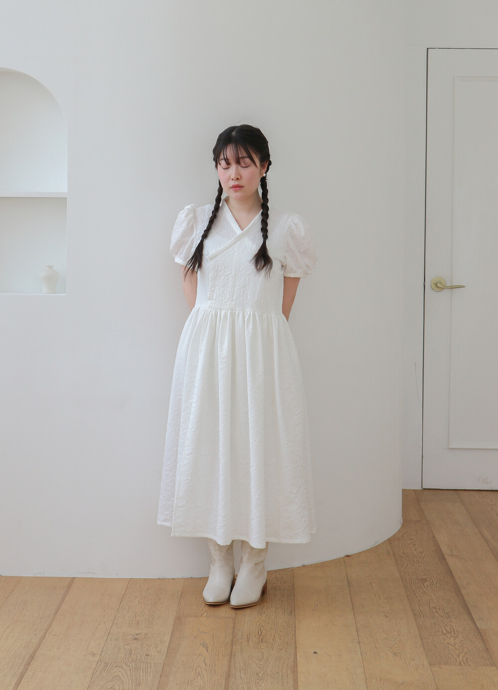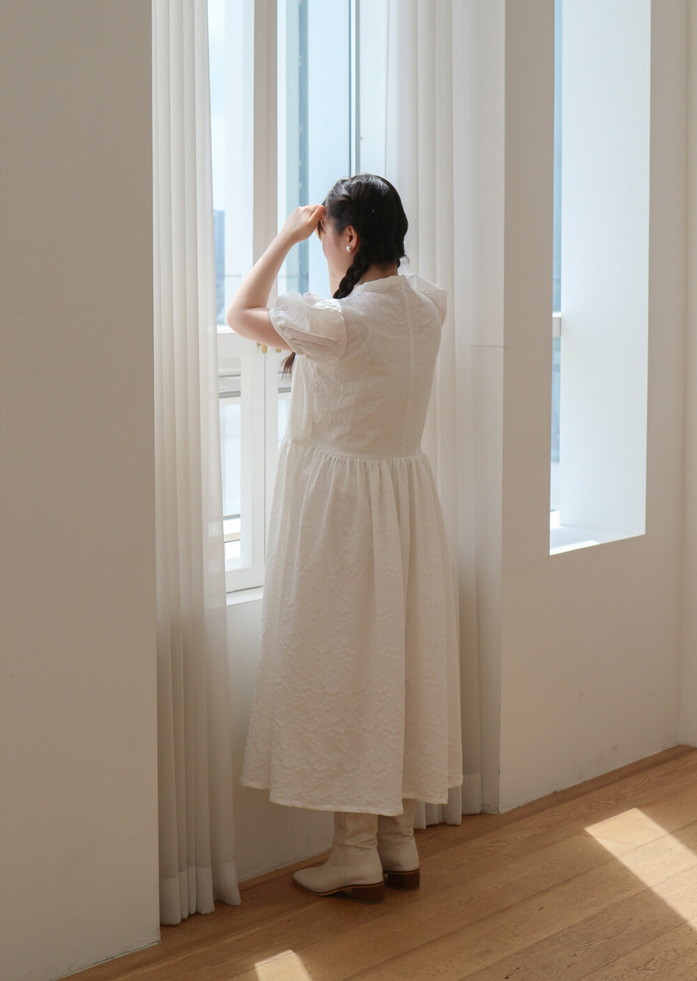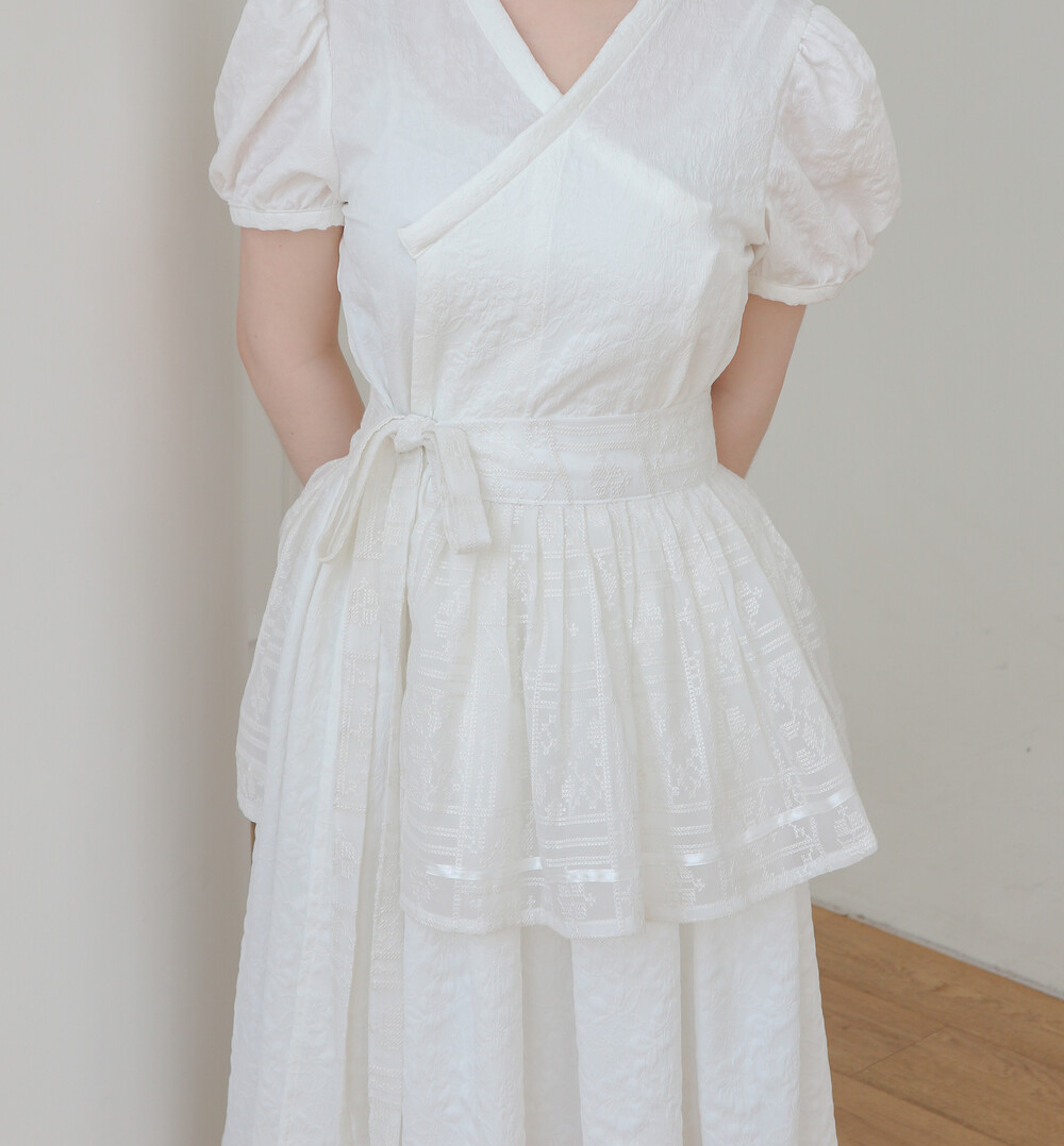 25 화이트 자갸드 원피스