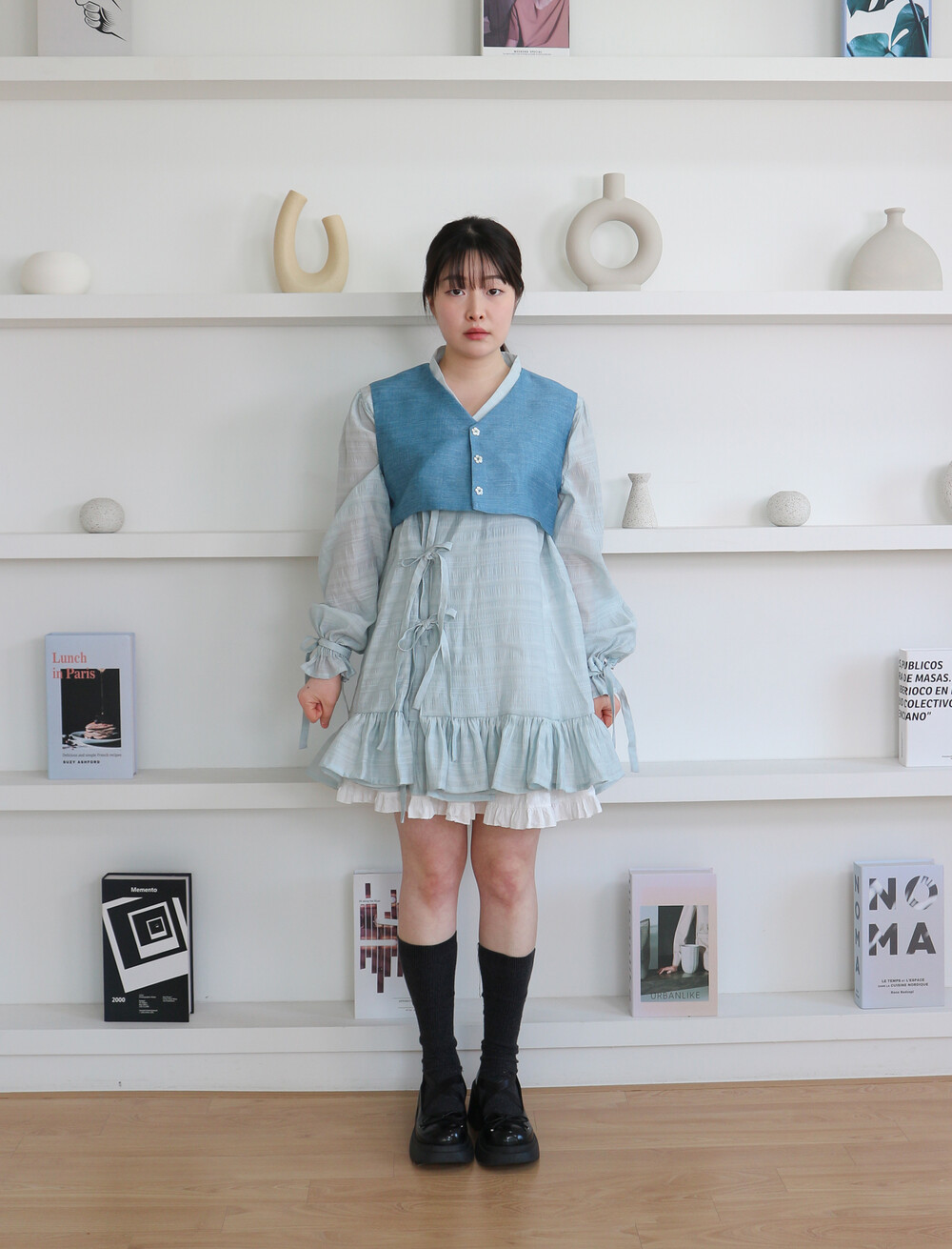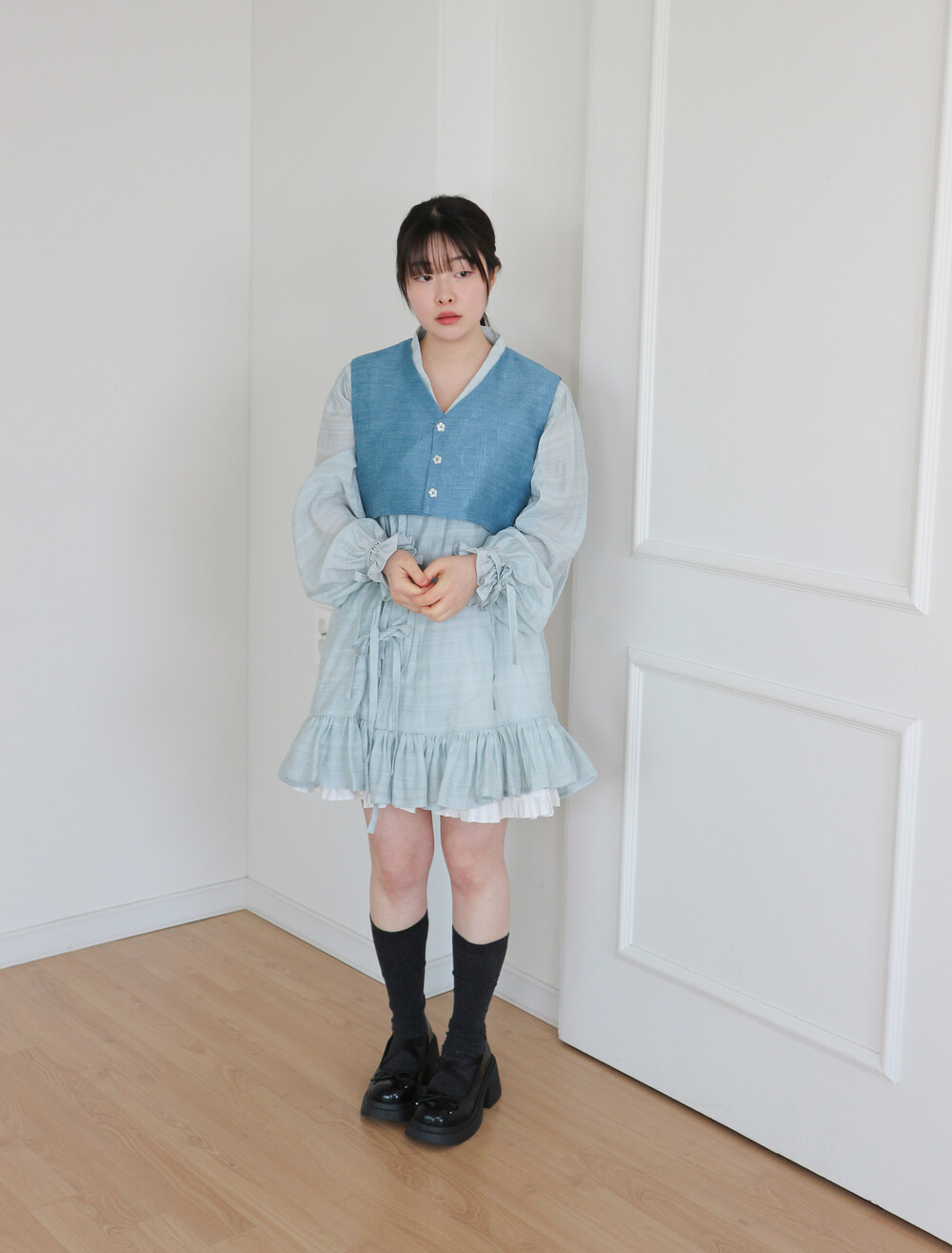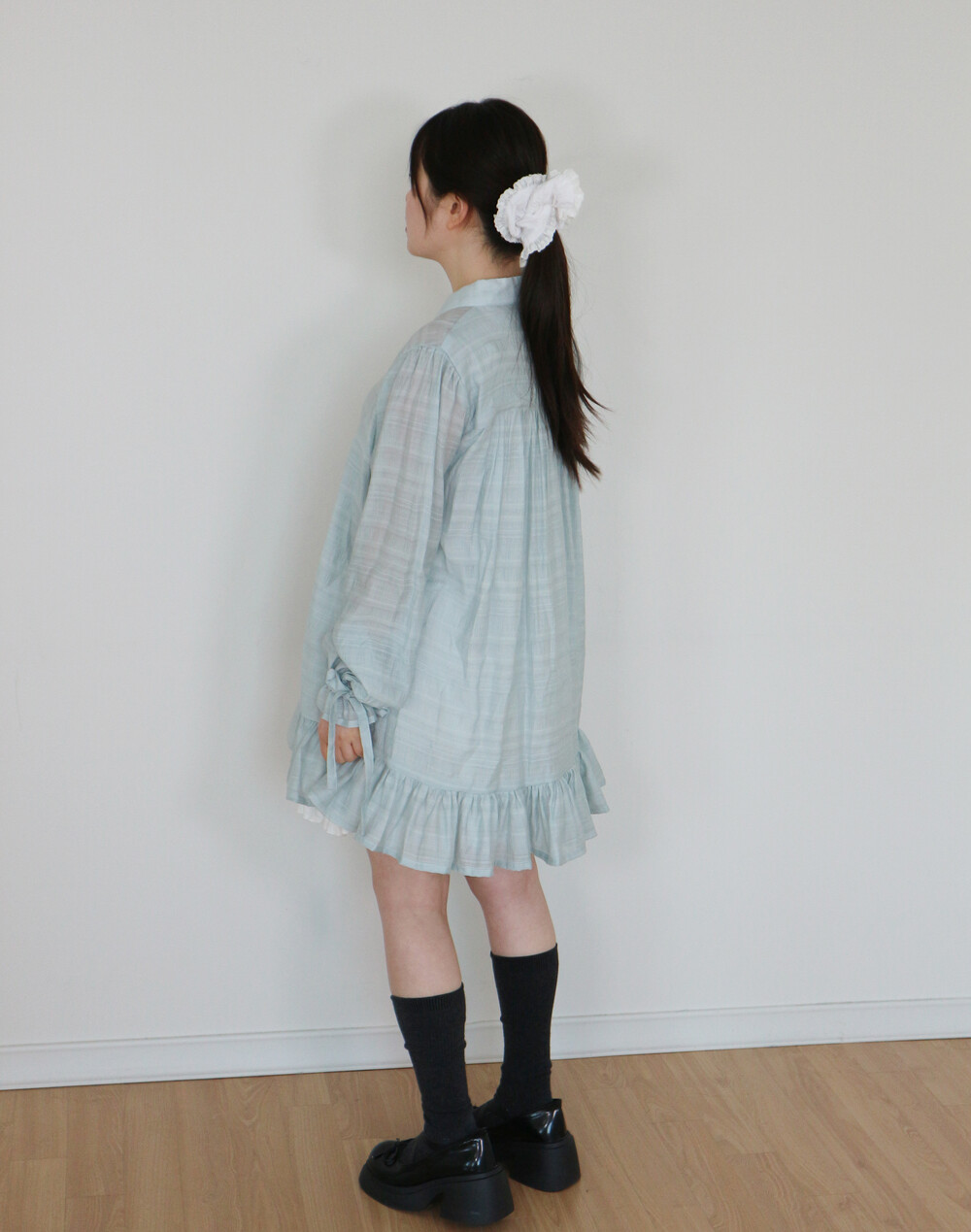 가벼운 소재로 레이어드하기 좋고, 청바지, 화이트 스커트, 반바지 등과 함께 데일리하게 스타일링 할 수 있습니다. 또한, 소매에는 고무줄과 리본 끈을 더해 사랑스러운 무드를 연출할 수 있습니다! 착용감과 촉감이 좋아 봄철에 입기 좋은 미니 원피스입니다.