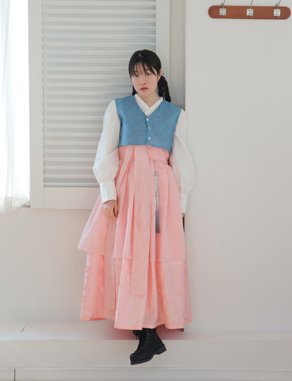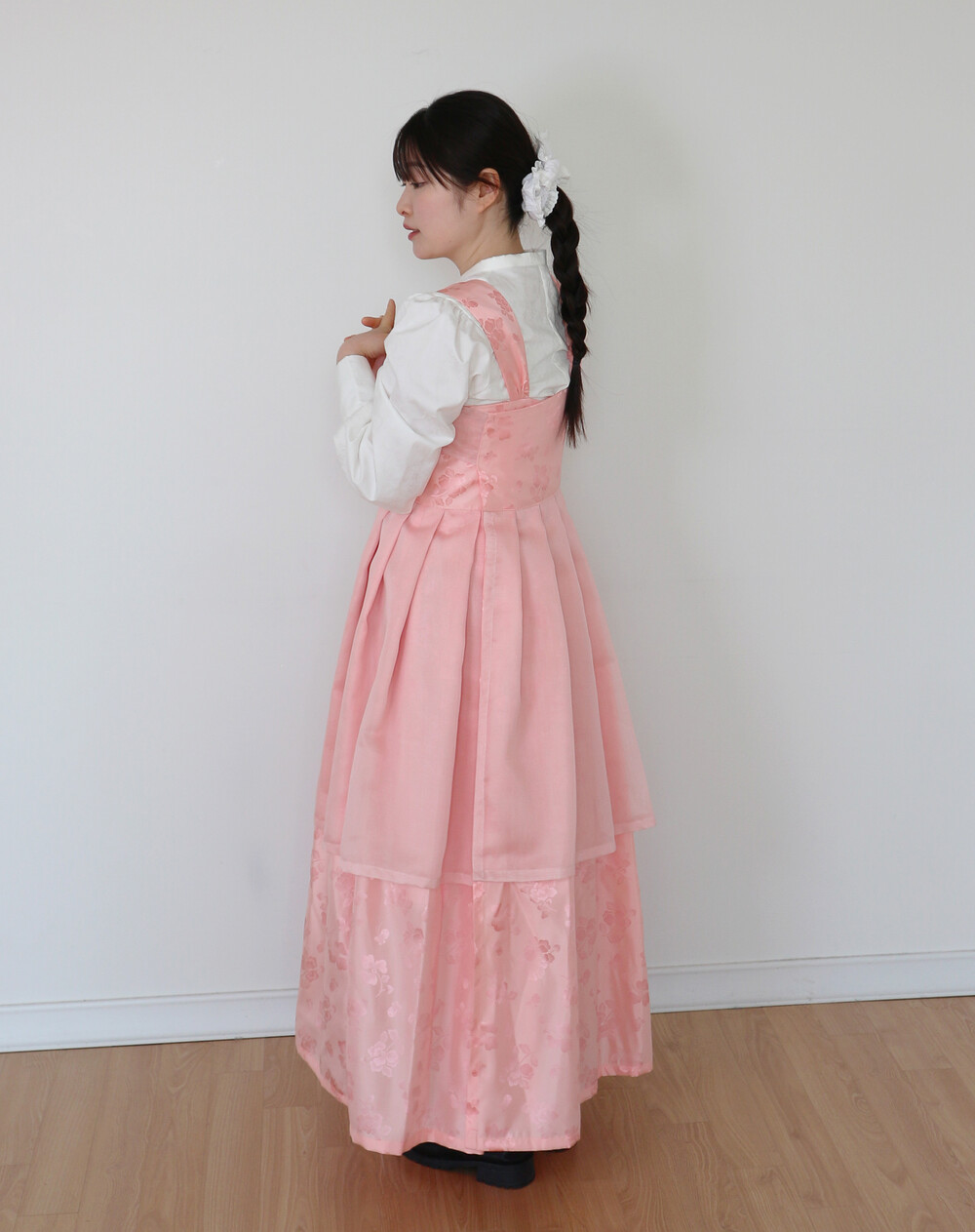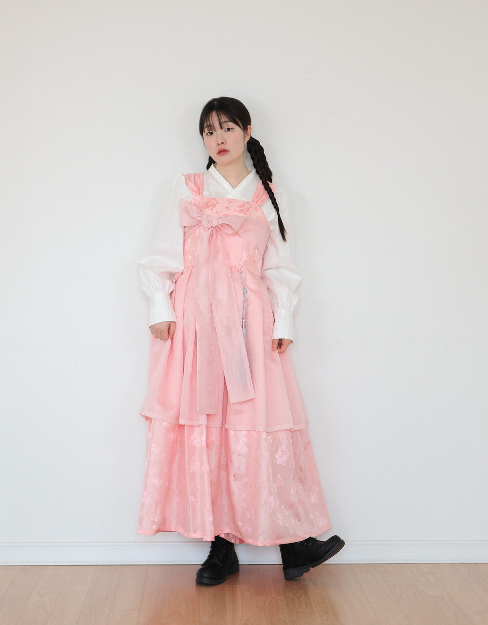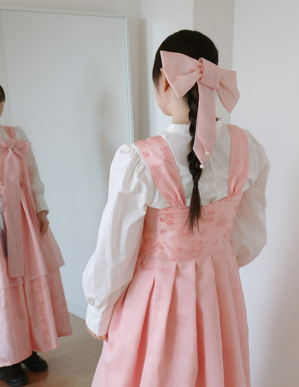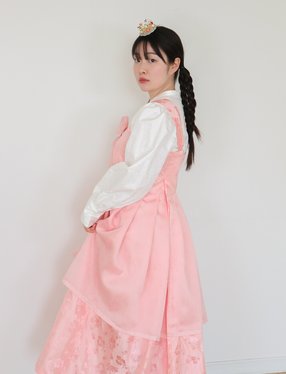 화이트 저고리나 블라우스와 함께 착용하기 좋으며, 단독으로도 멋스럽게 연출할 수 있습니다. 허리부분의 고리를 활용해 전통적인 노리개부터 다양한 장신구까지 스타일링할 수 있으며, 사랑스럽고 화려한 디자인으로 공연 한복으로도 활용하기 좋은 원피스입니다.