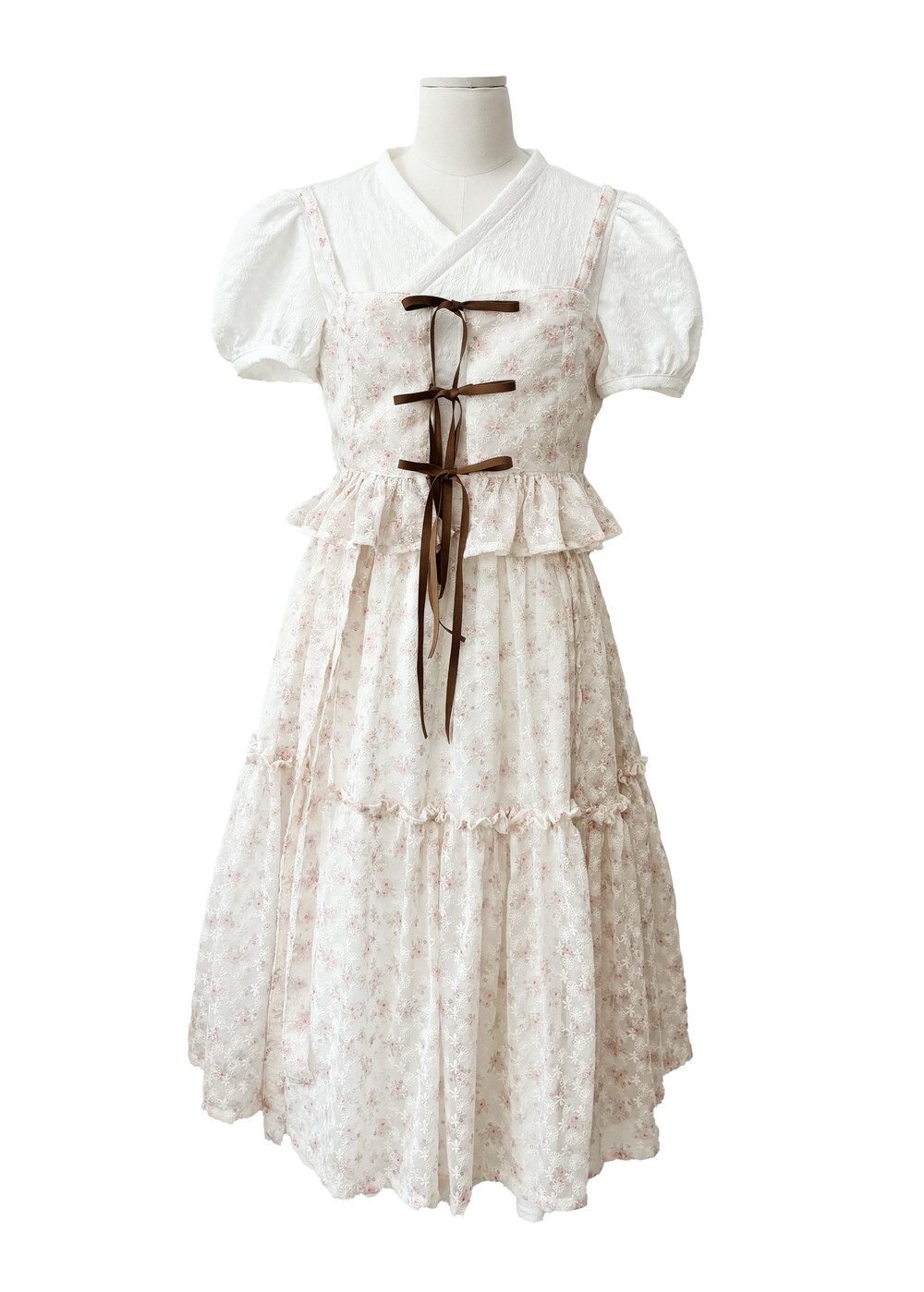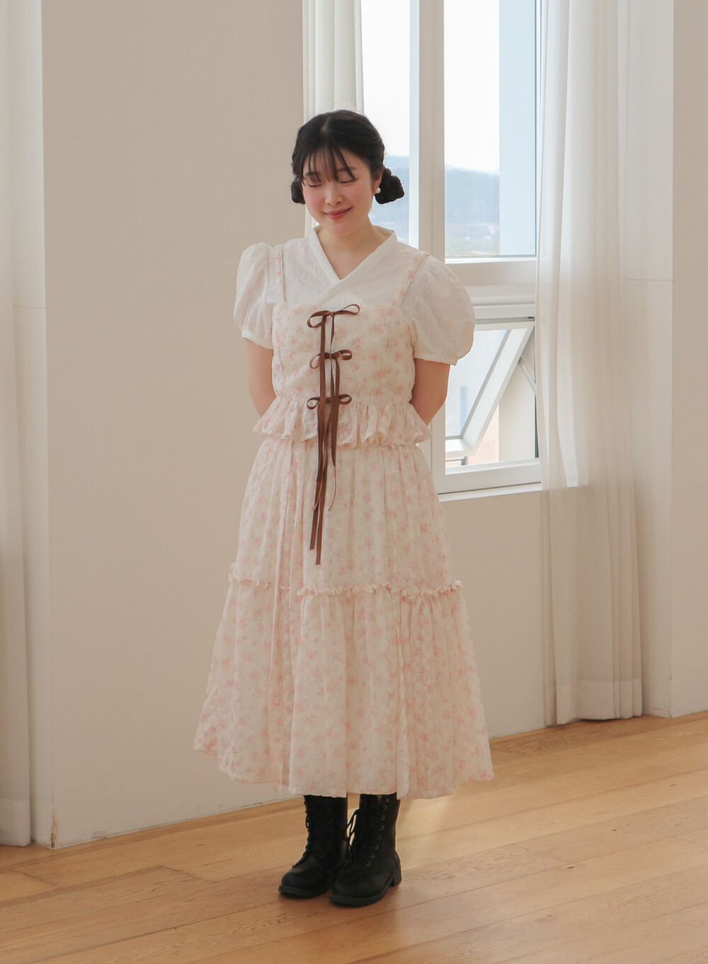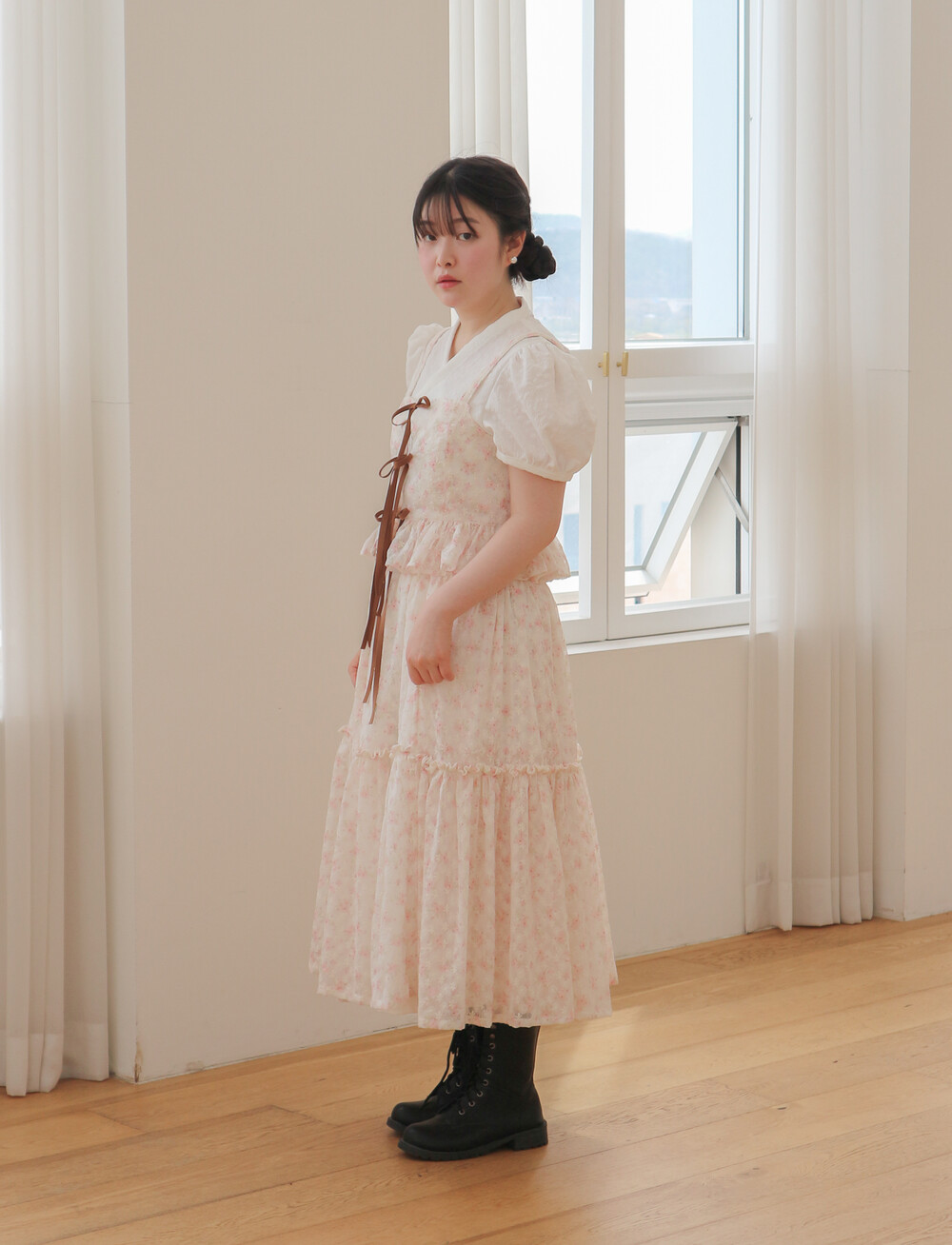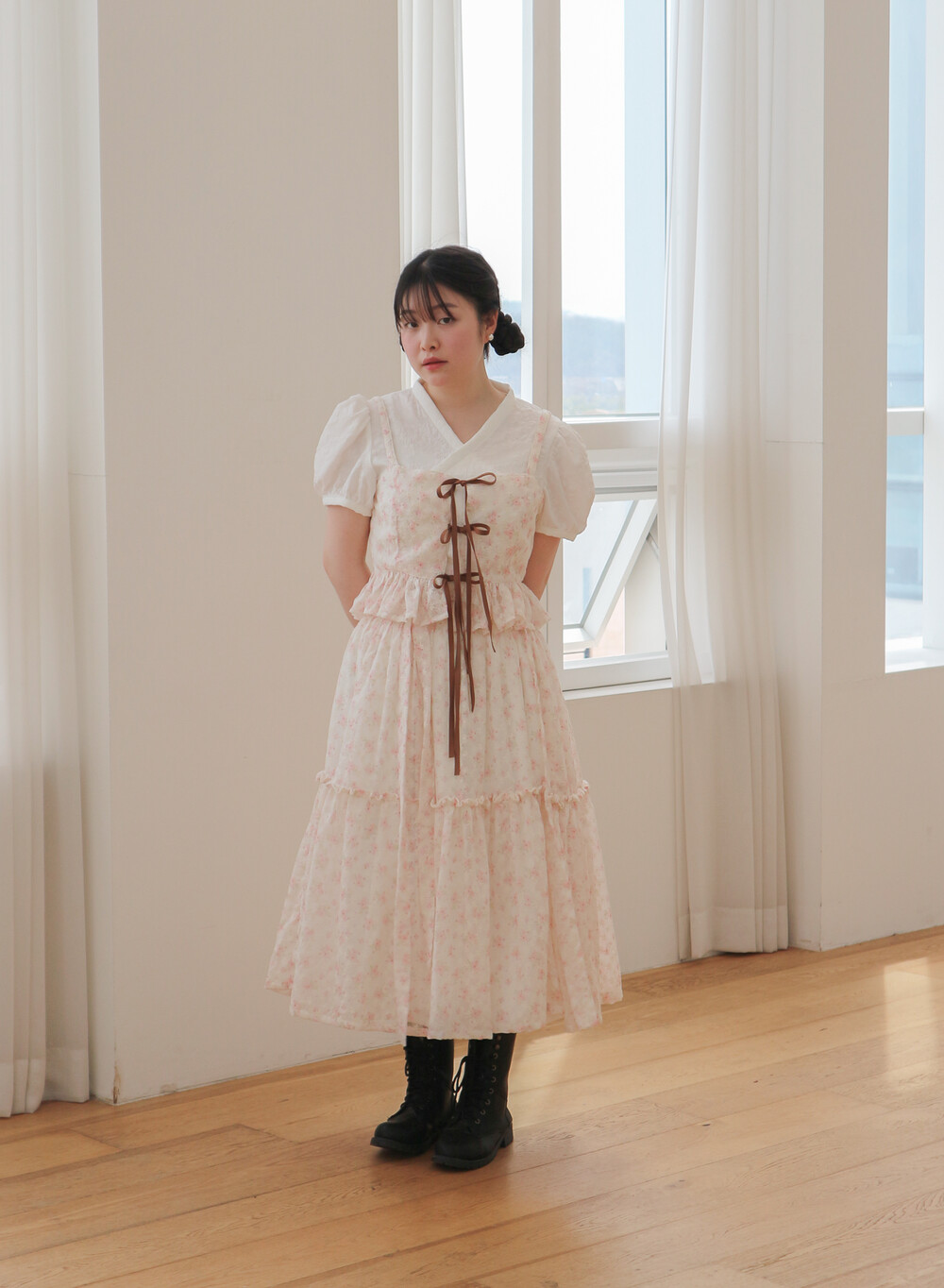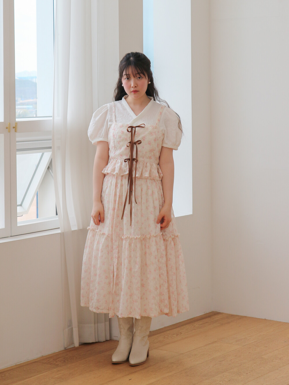 - 여리여리한 쉬폰 원단과 잘 어울리는 사랑스러운 디자인입니다.