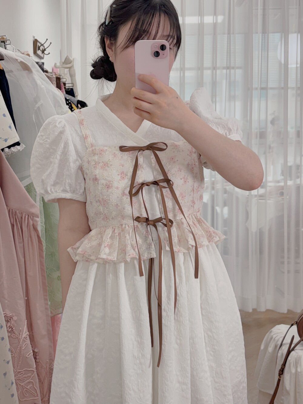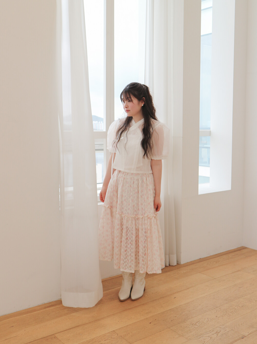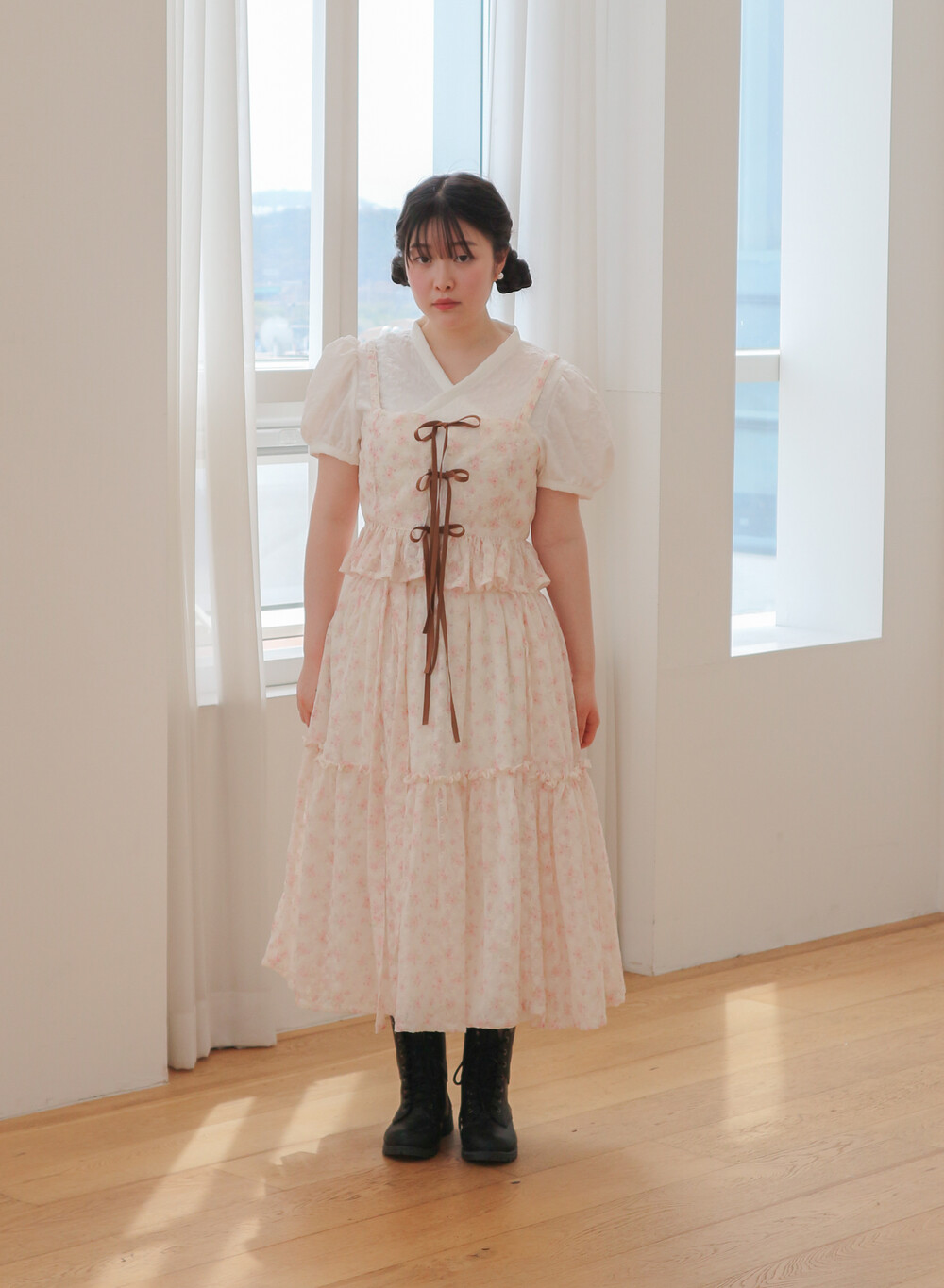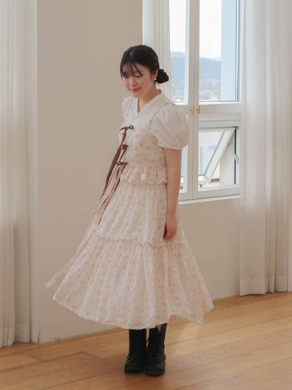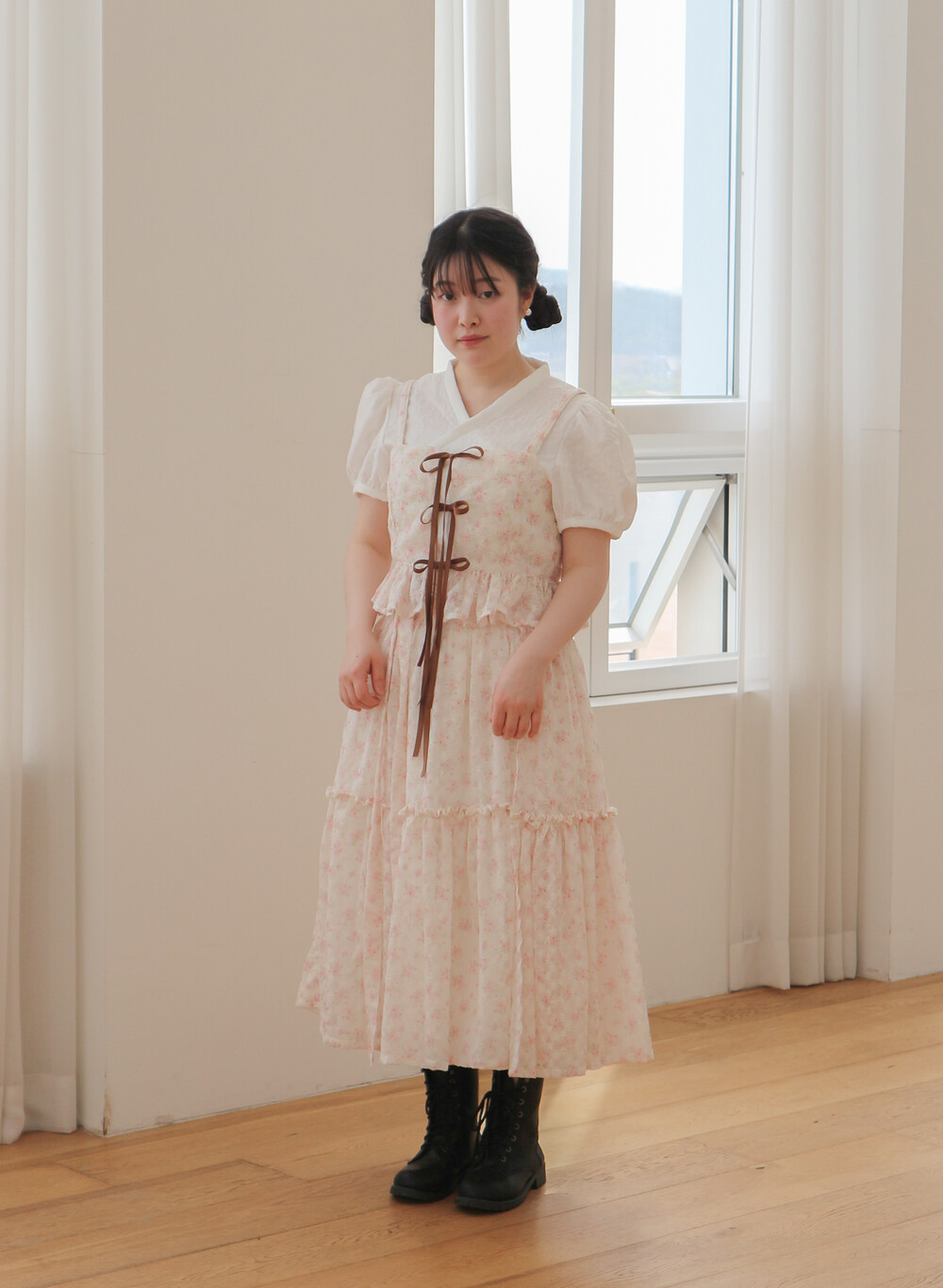 - 여리여리한 쉬폰 원단과 잘 어울리는 사랑스러운 디자인입니다.