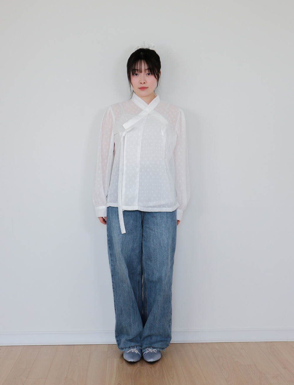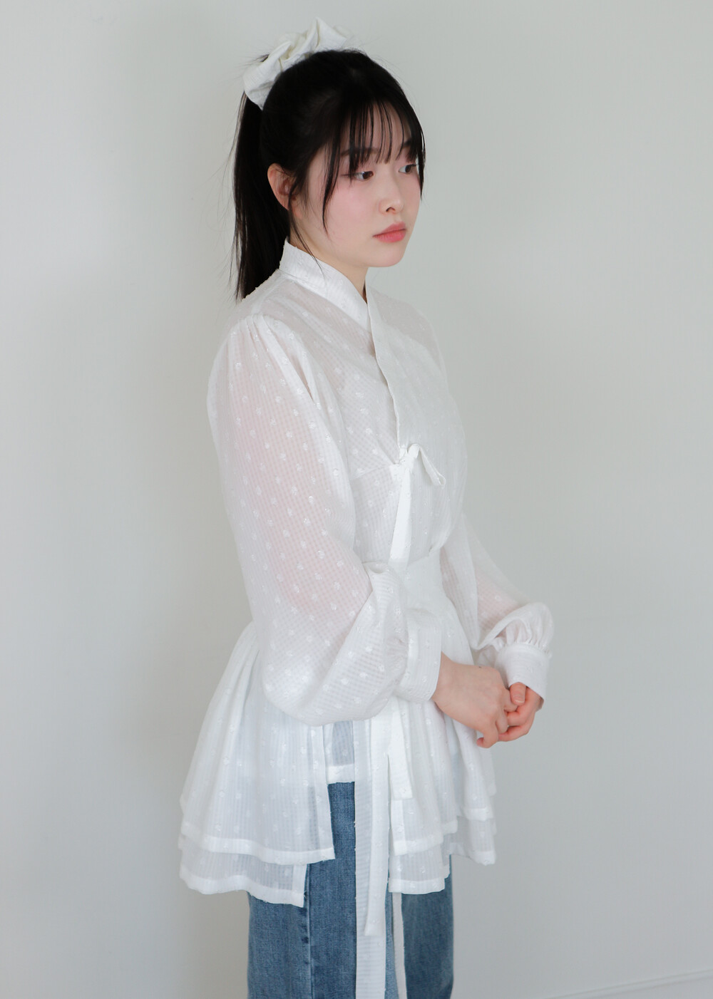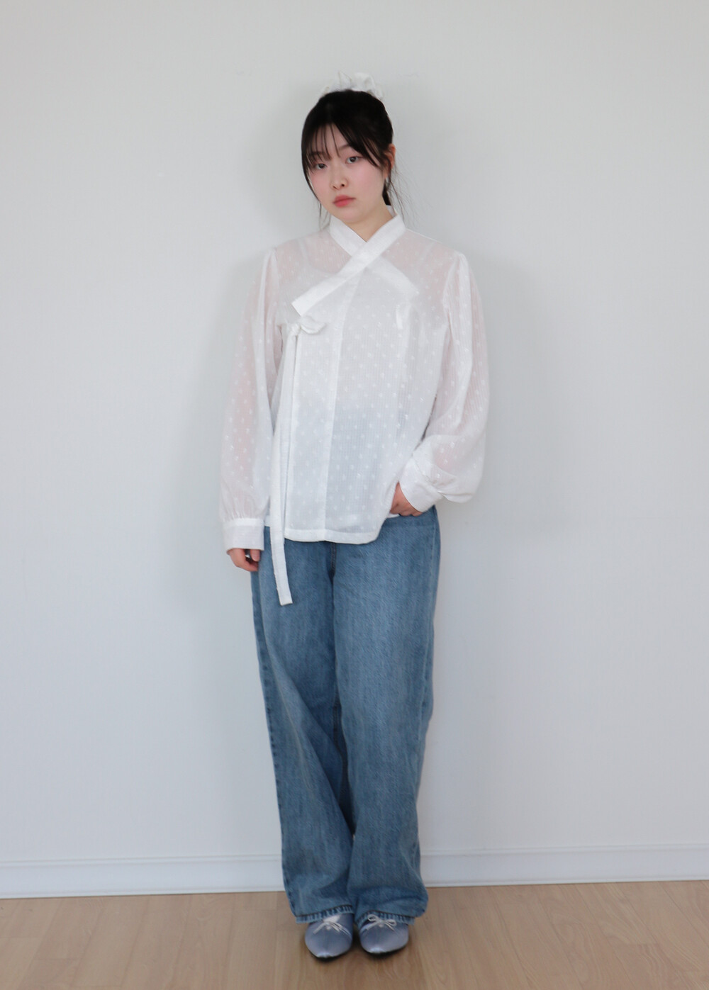 심플한 저고리입니다. 소매는 풍성한 퍼프소매에 커프스가 있어서