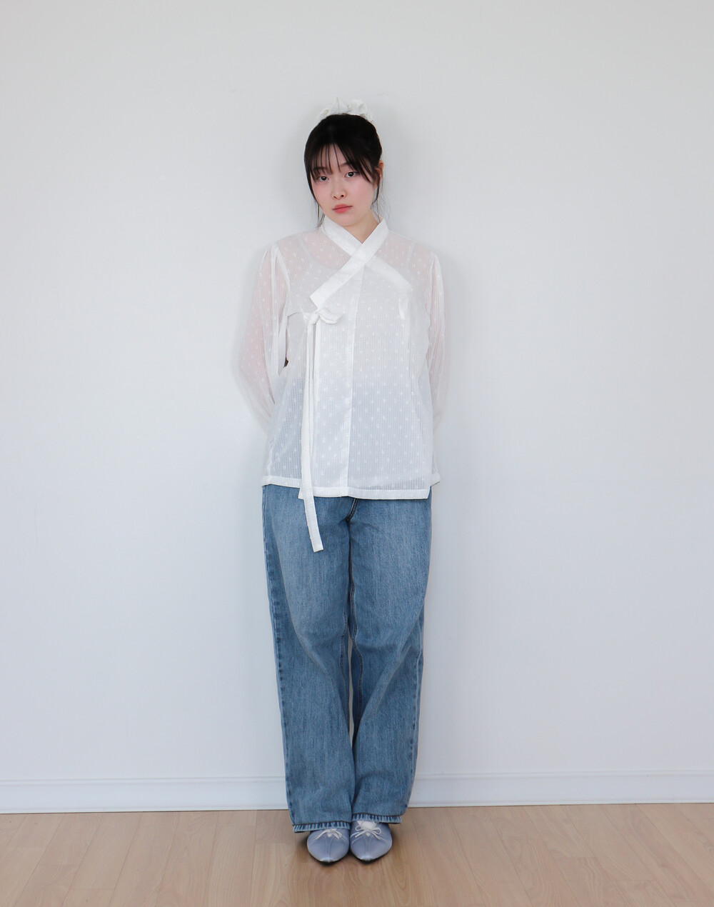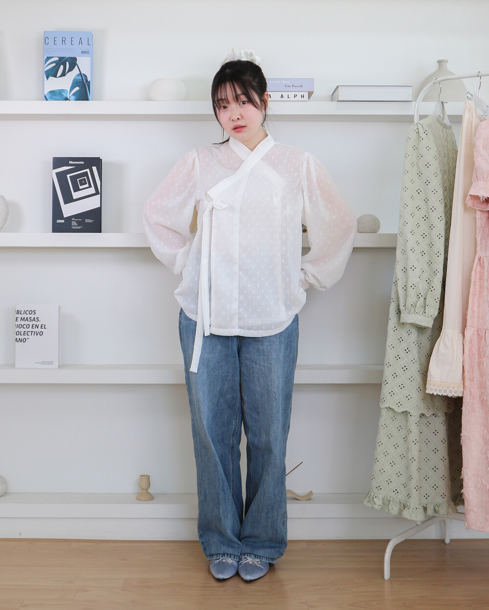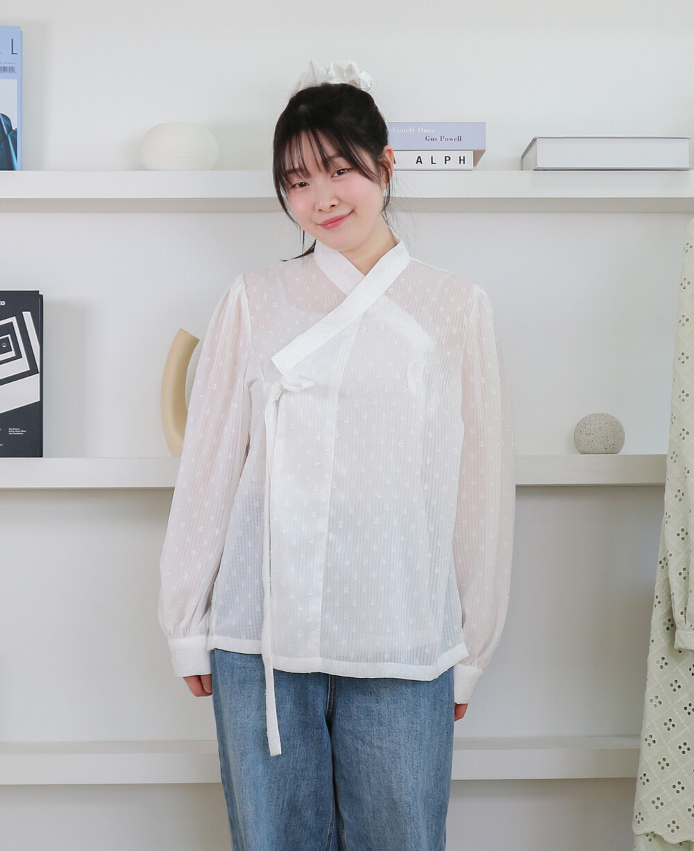 심플한 저고리입니다. 소매는 풍성한 퍼프소매에 커프스가 있어서