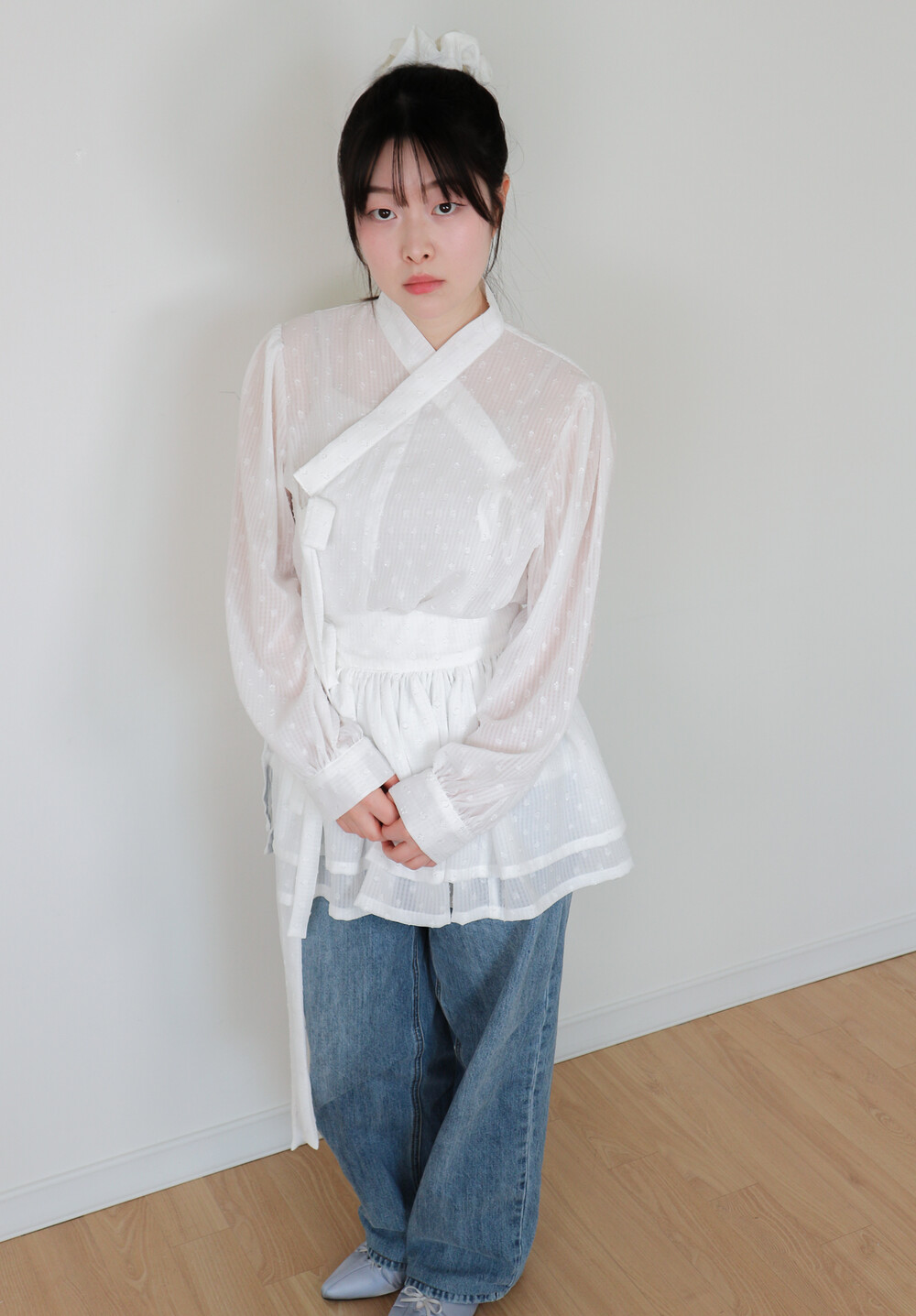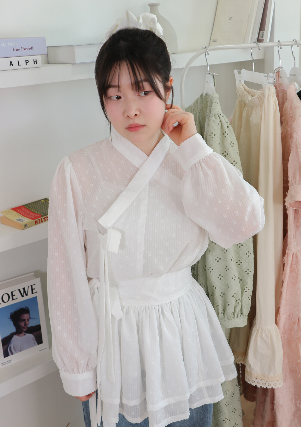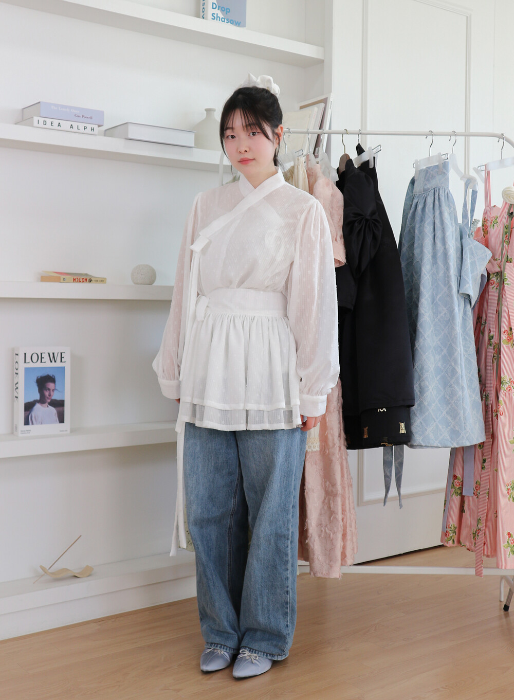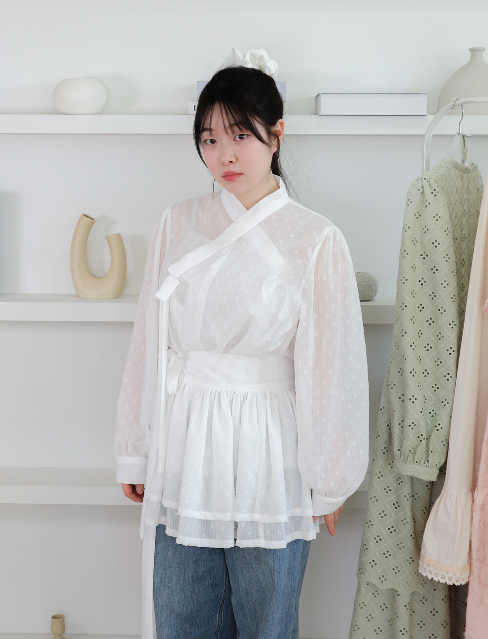저고리와 함께 착용하거나 원피스, 바지, 치마 등 위에 레이어드 할 수 있습니다.