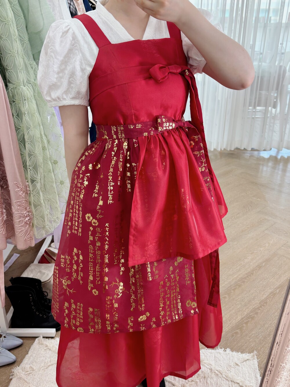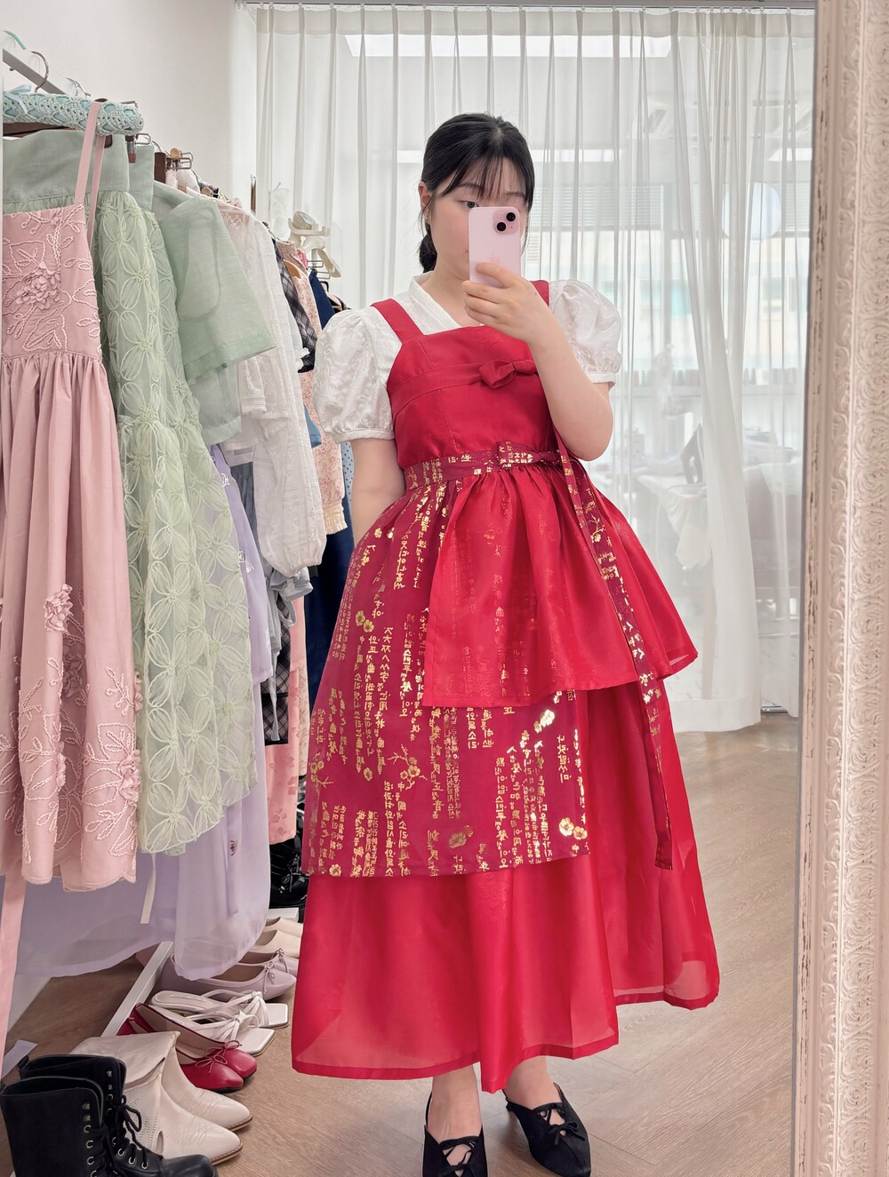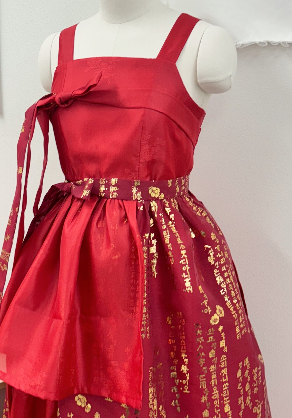 한복 원단 소담견으로 제작한 두가지 컬러의 겹 말기 원피스입니다.