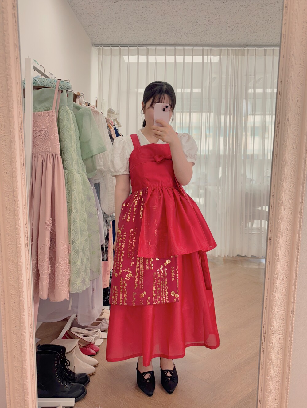겹 말기 원피스에 이너로 전통한복, 생활한복, 목폴라, 반팔 등과 잘 어울립니다.