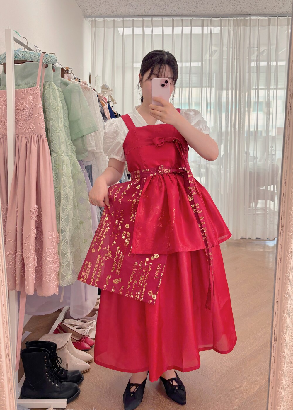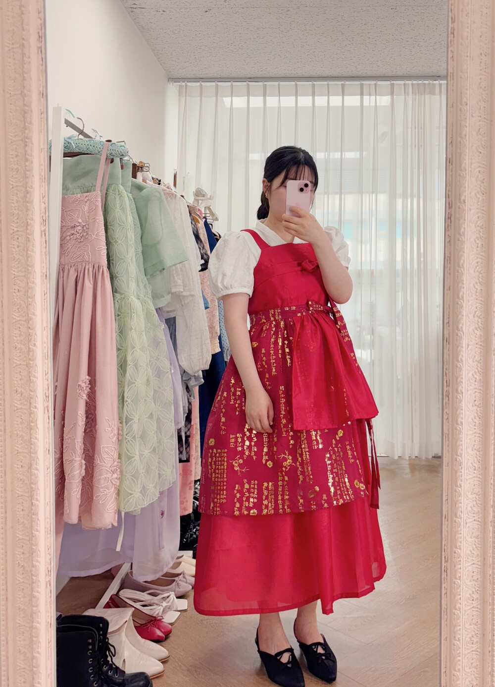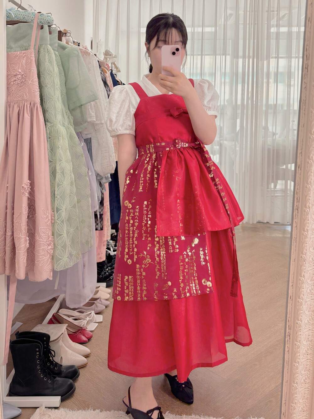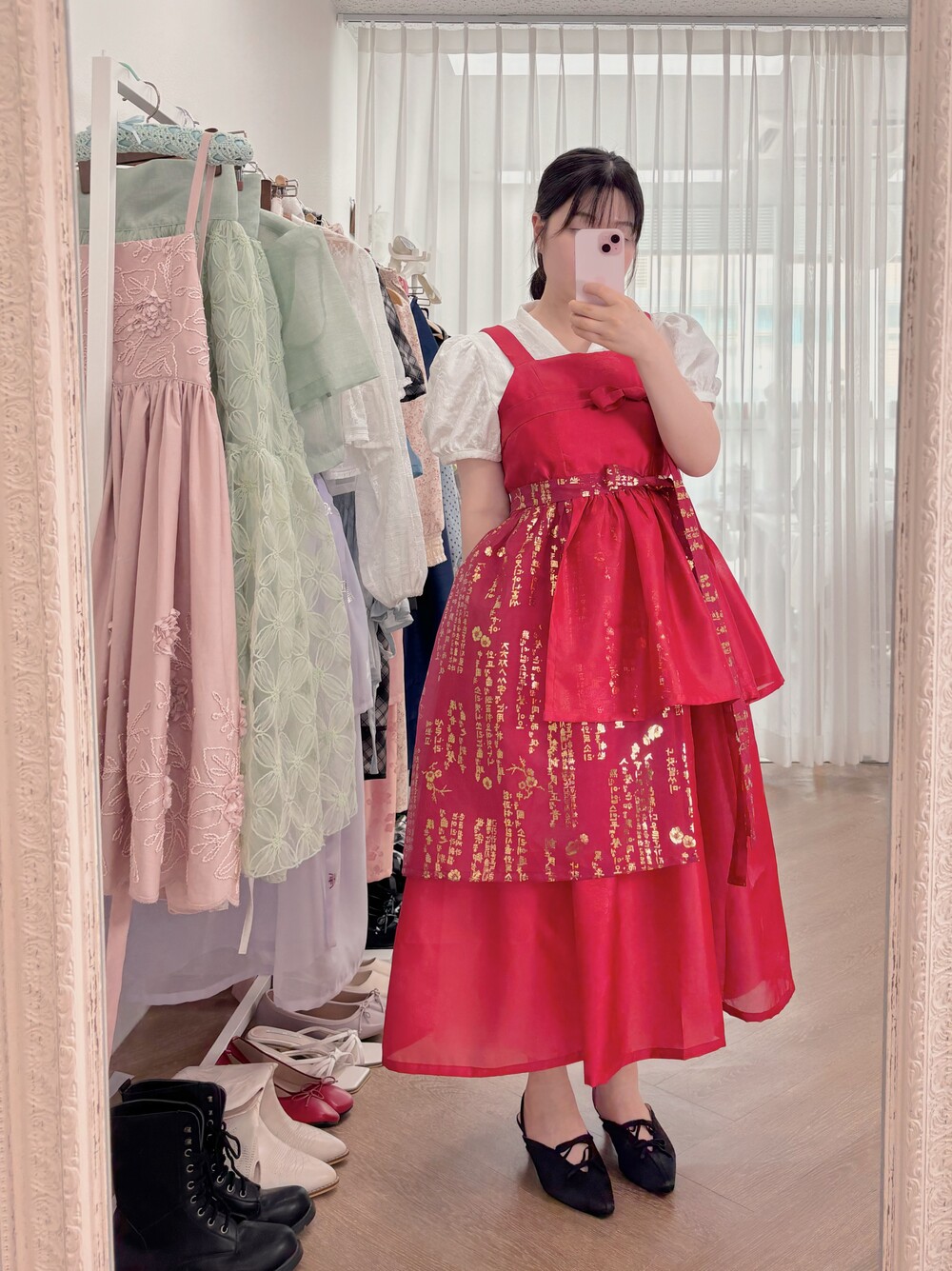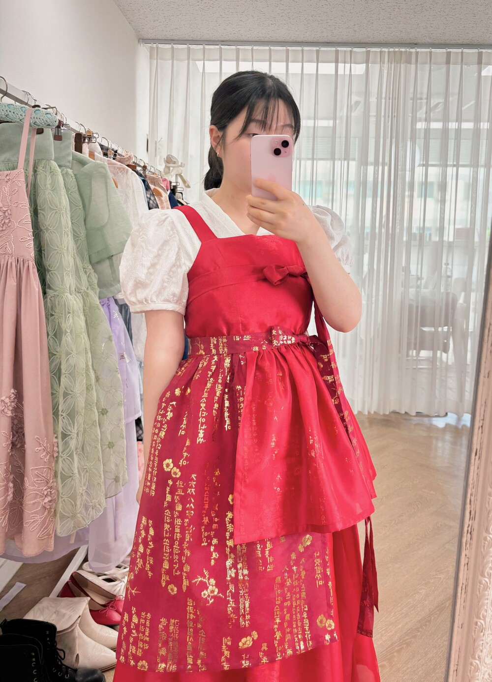 유니크한 금박 한글원단과 믹스매치하여 전통한복 원단의 고급스러움을 느껴볼 수 있습니다.